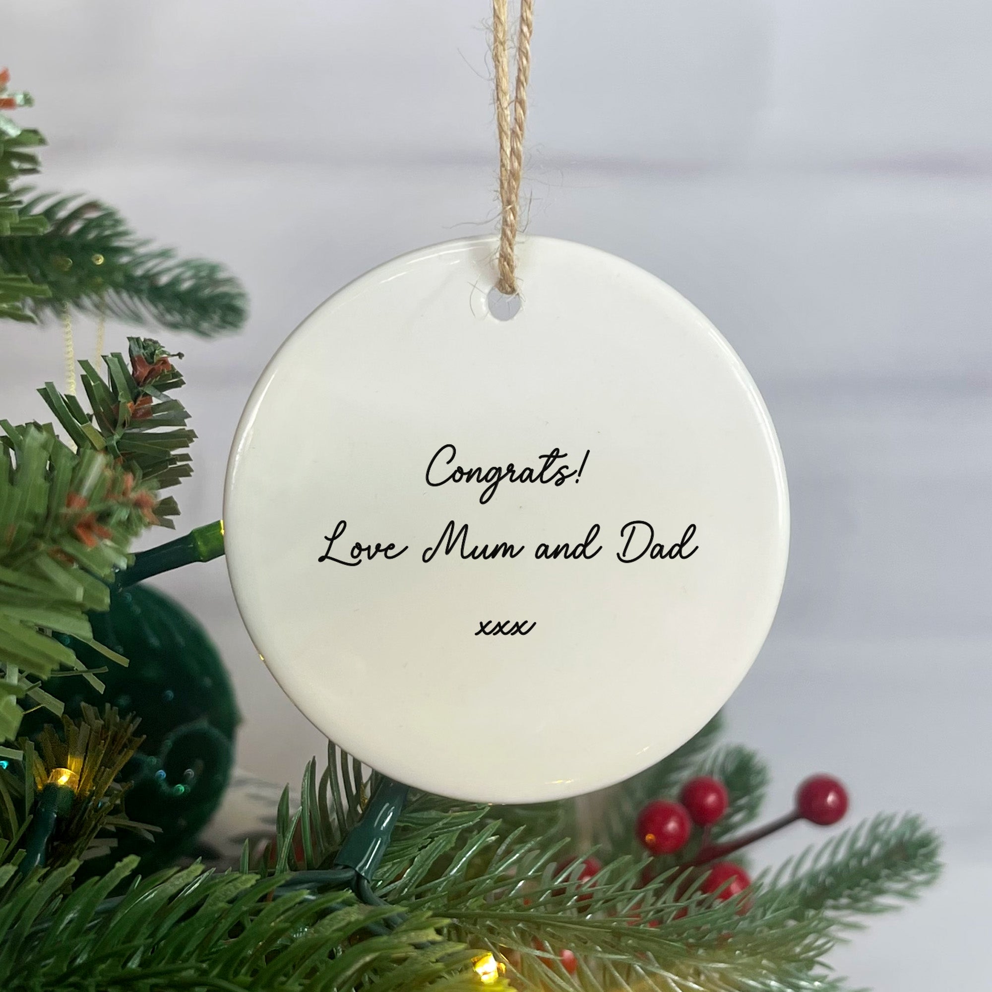 For an extra-special touch, you can choose to add a personalised message on the reverse side — perfect for a wedding date, a private note, or a sentimental message that makes the ornament even more unique.