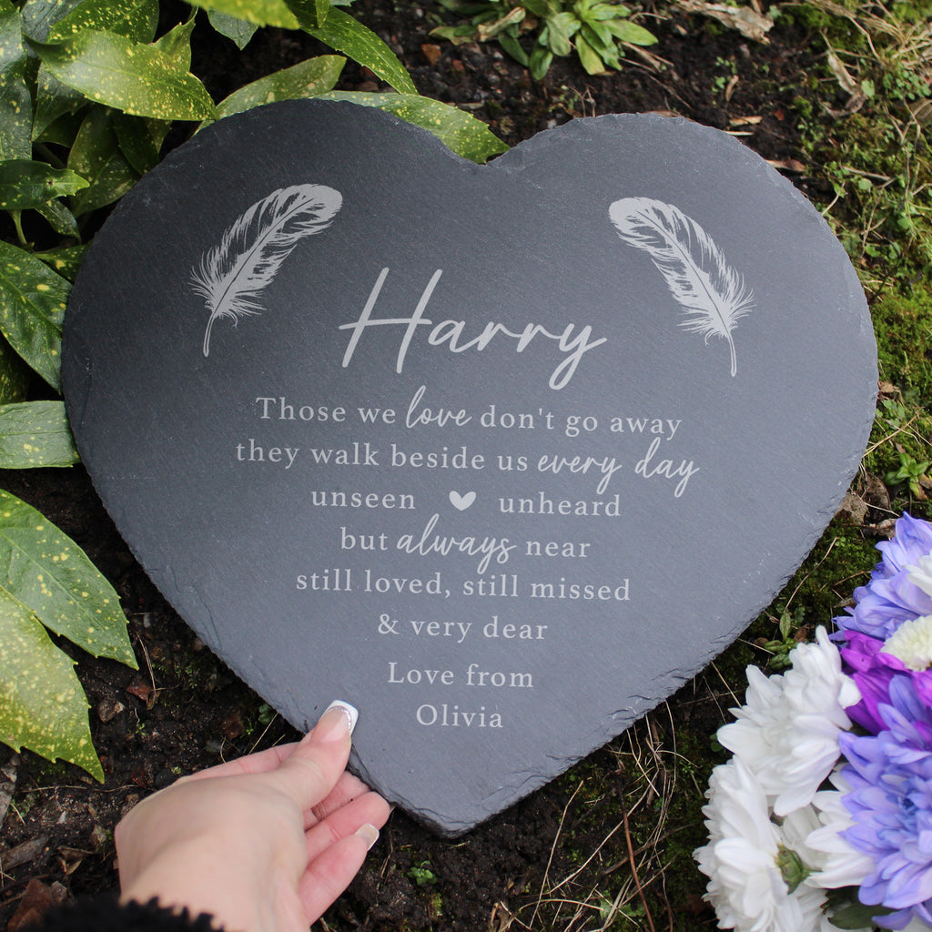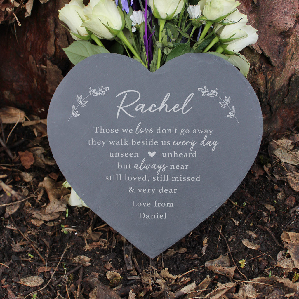 The natural slate adds a timeless, rustic charm, while the heart shape symbolises love and remembrance.