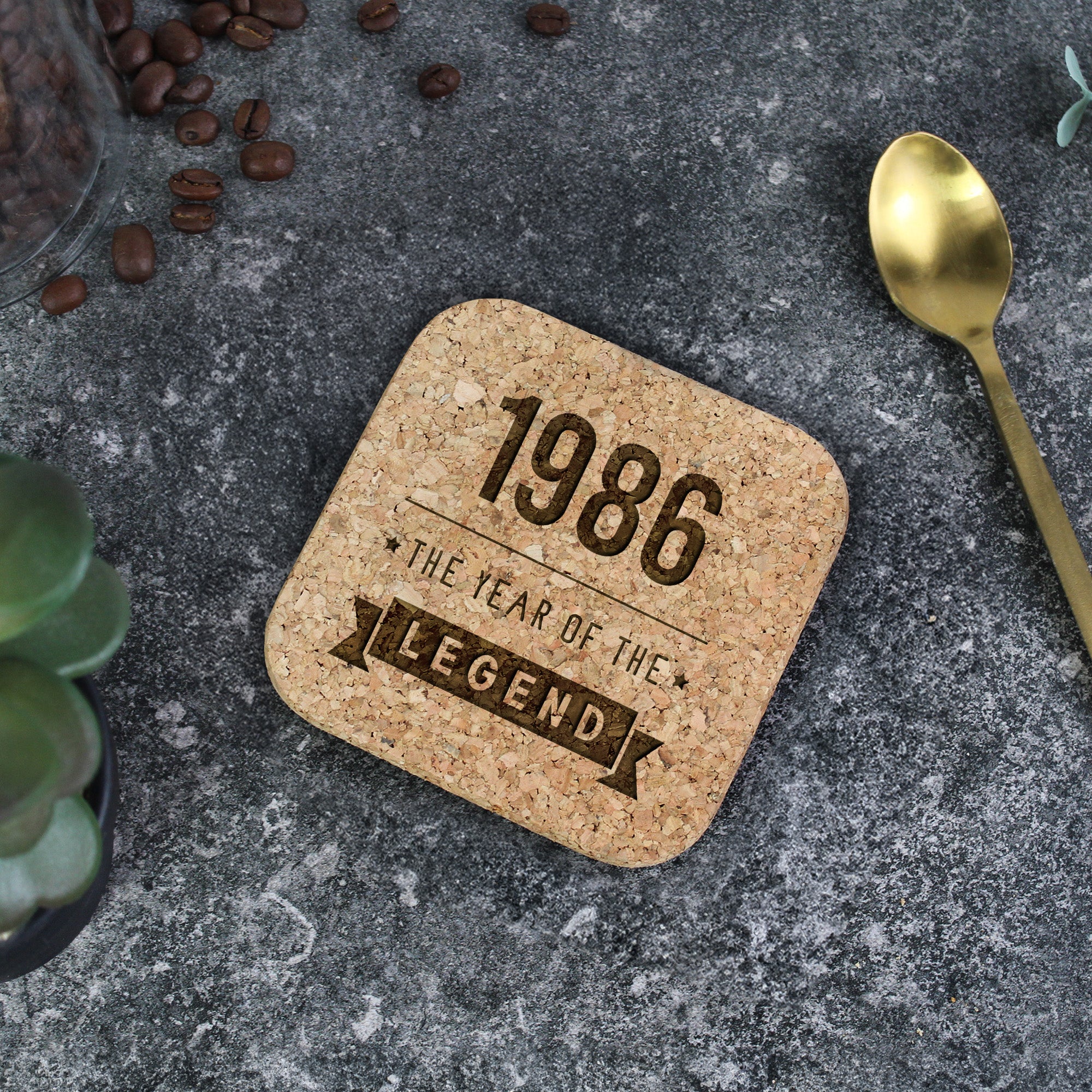 Engraved 1986 Year of The Legend Square Cork Coaster