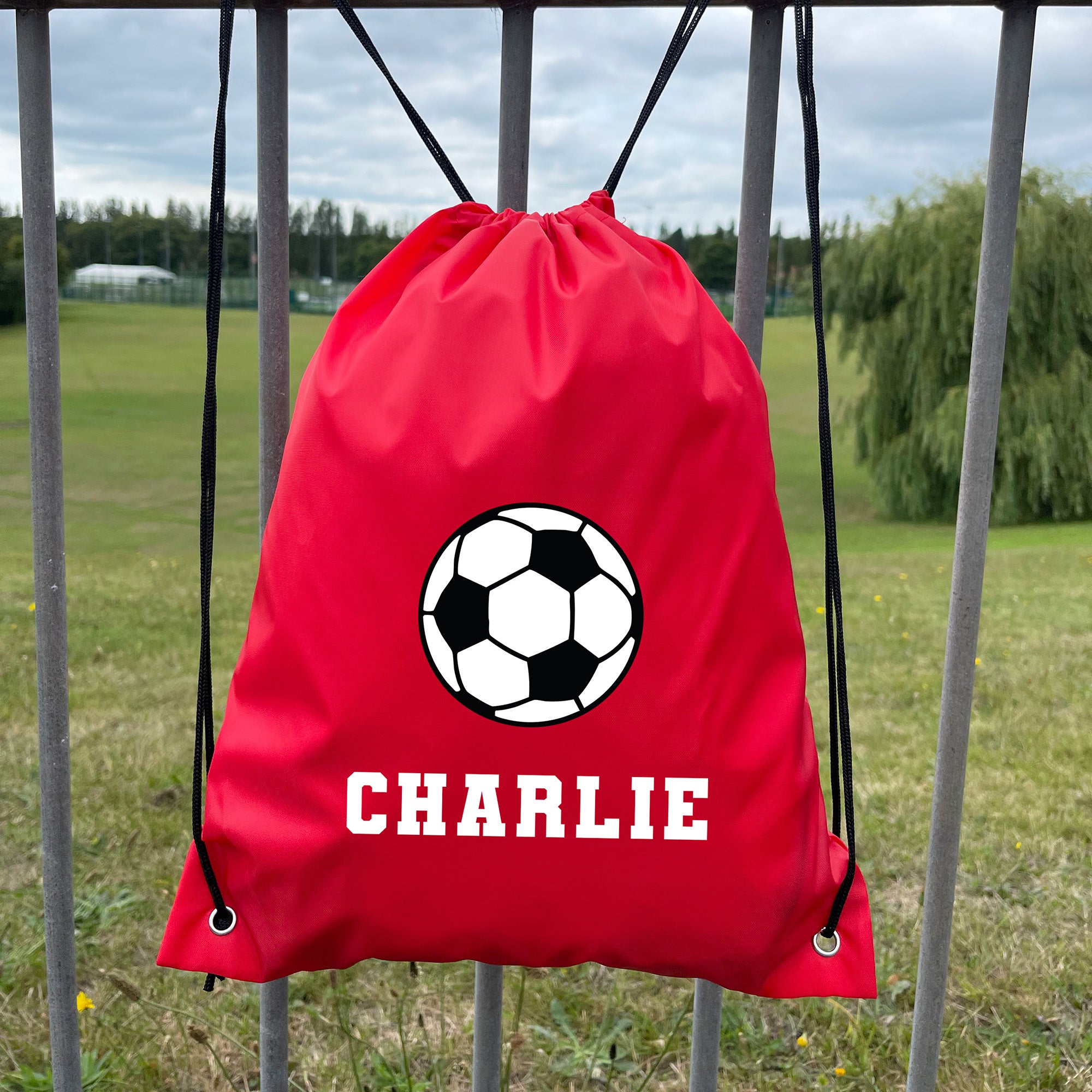 Each bag is personalised with your child's name and features a fun football icon, making it a practical and personal gift for boys and girls alike.