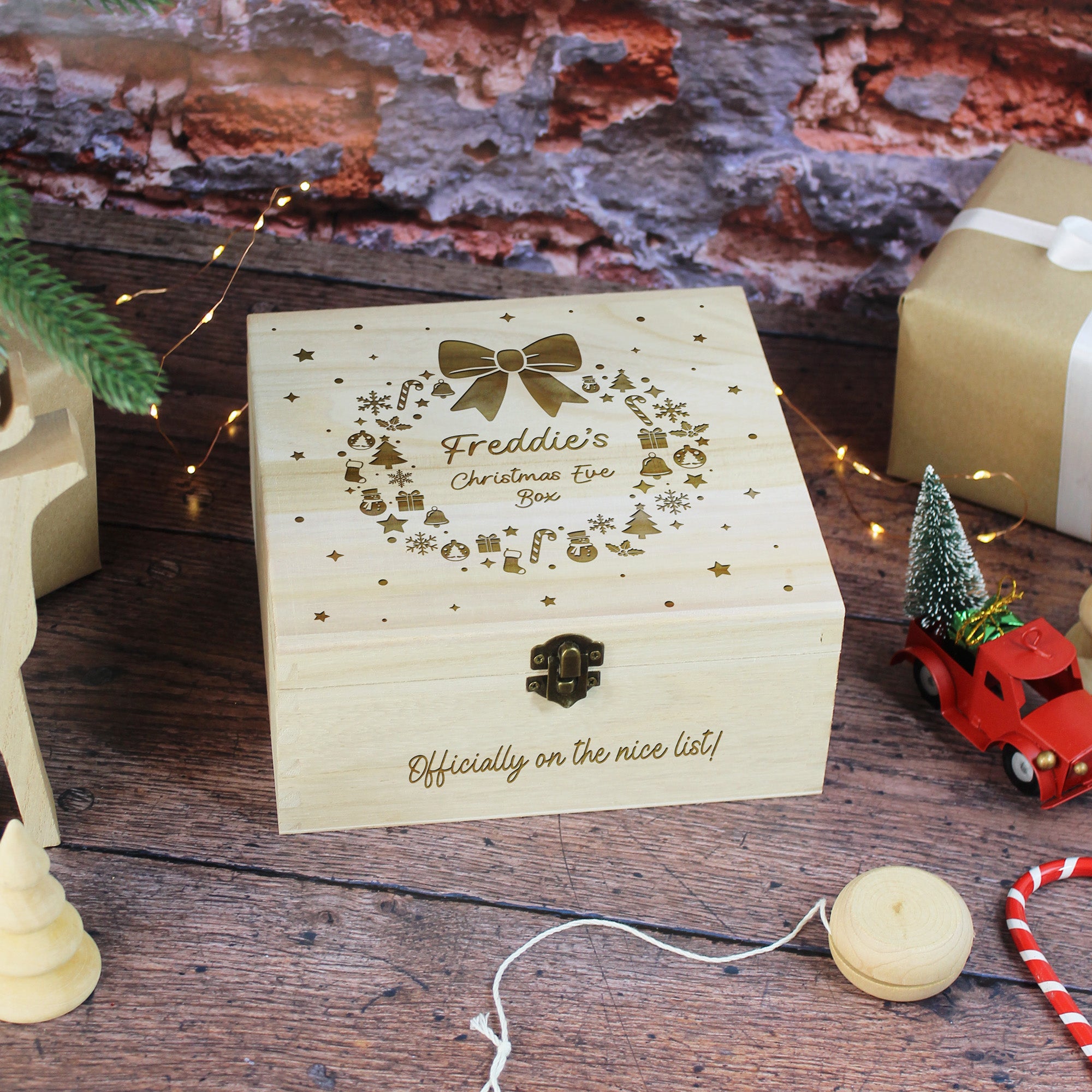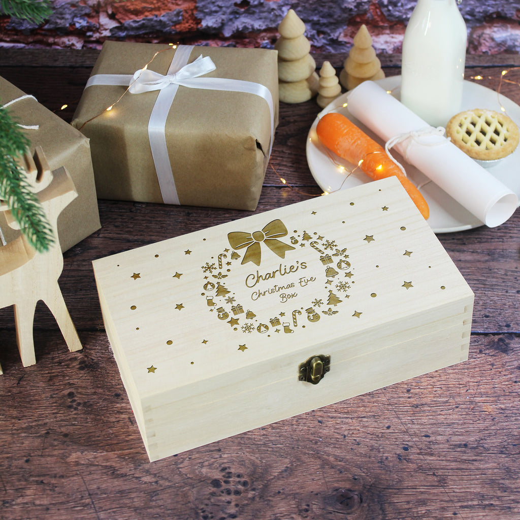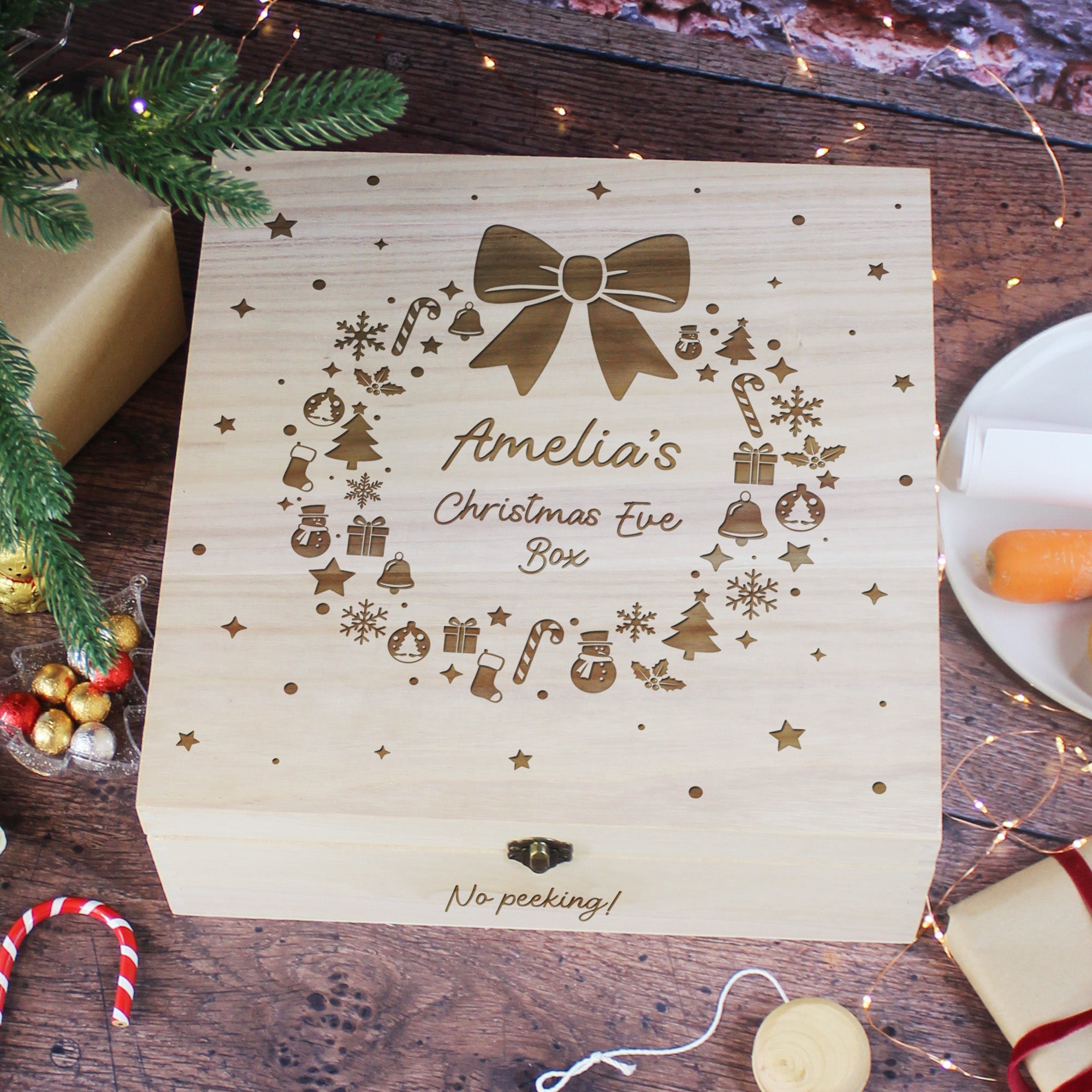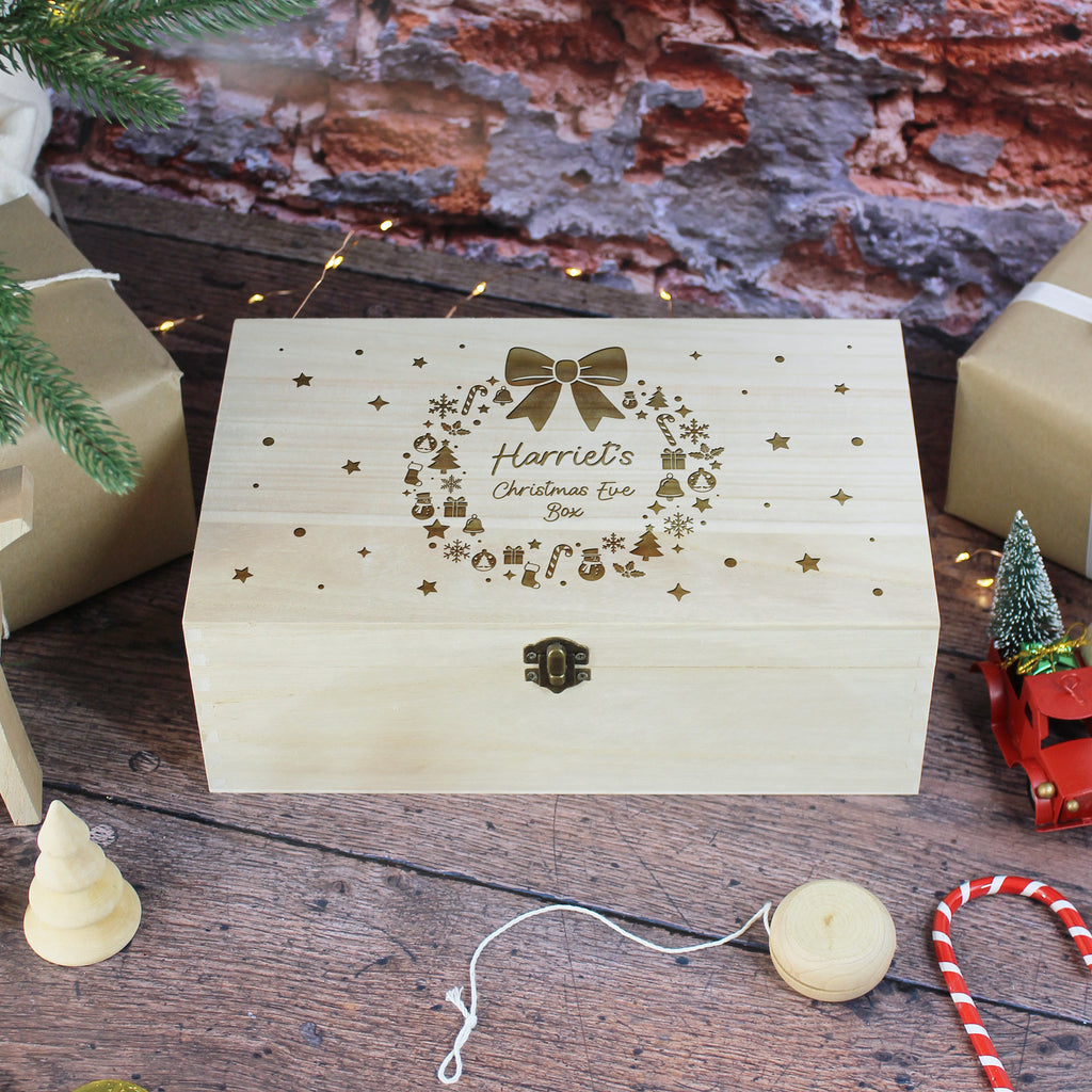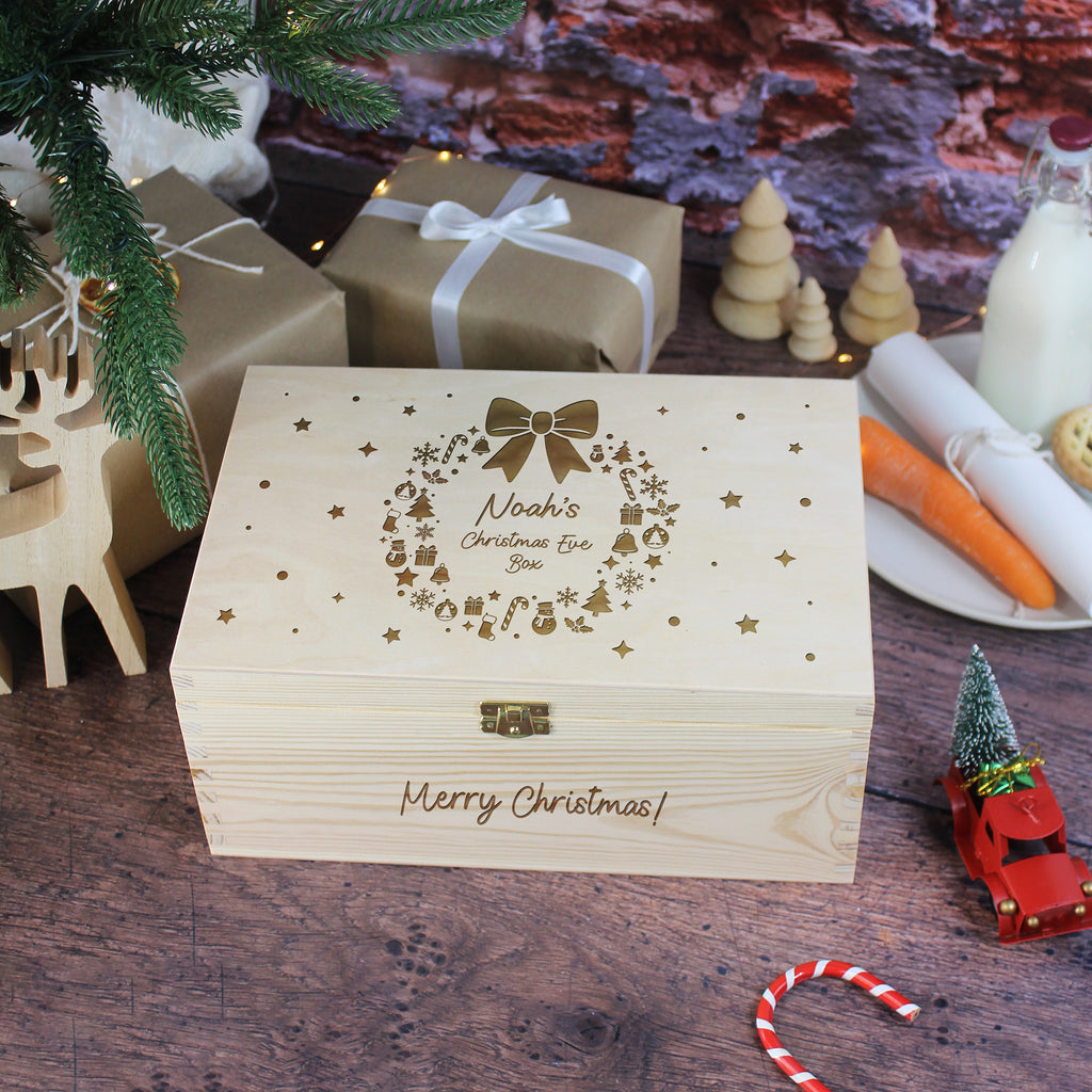 Personalised Christmas Eve Box with Wreath Design - 6 Sizes