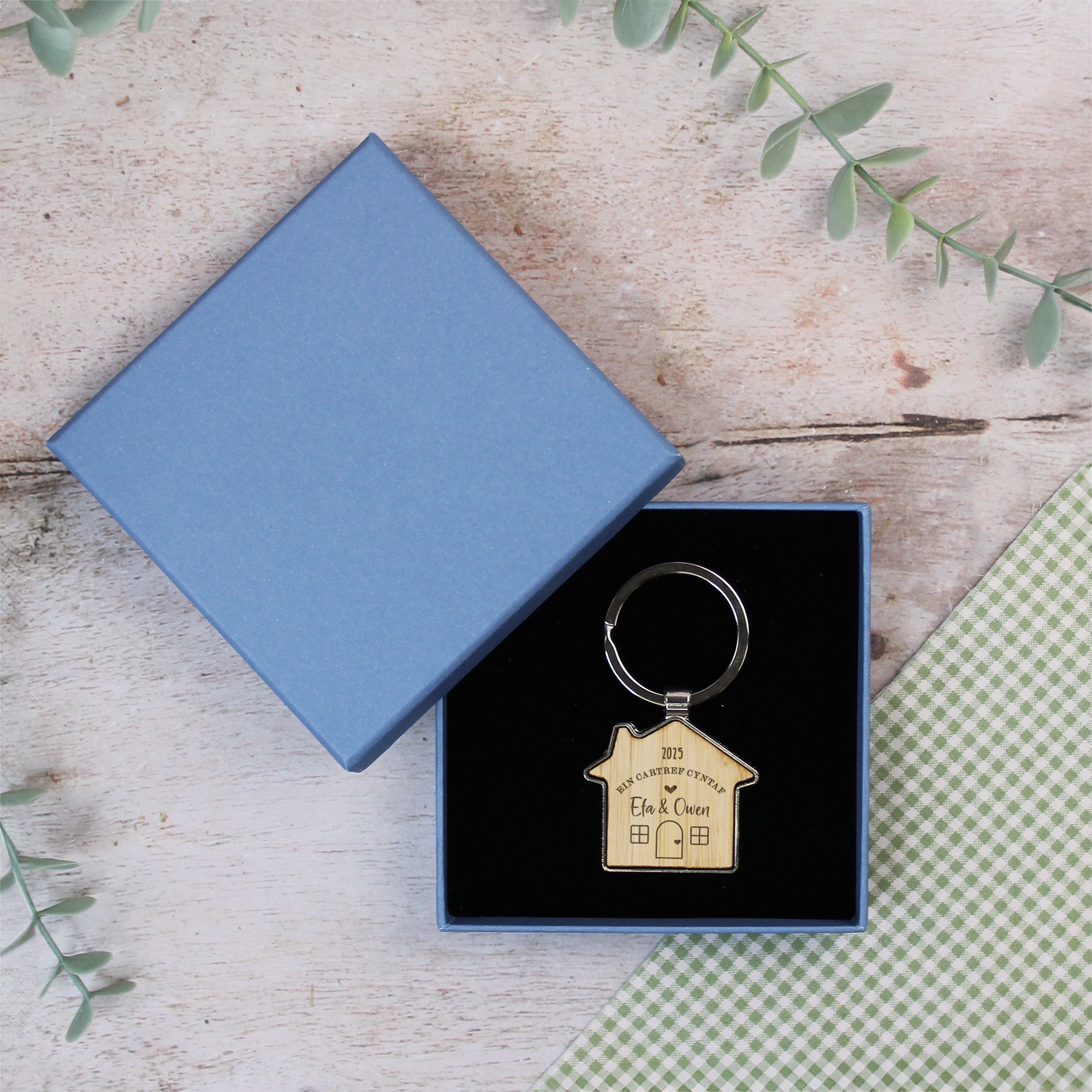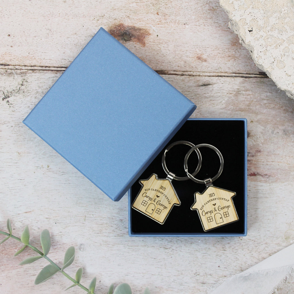 Personalised 'Ein Cartref Cyntaf' Welsh House Keyrings