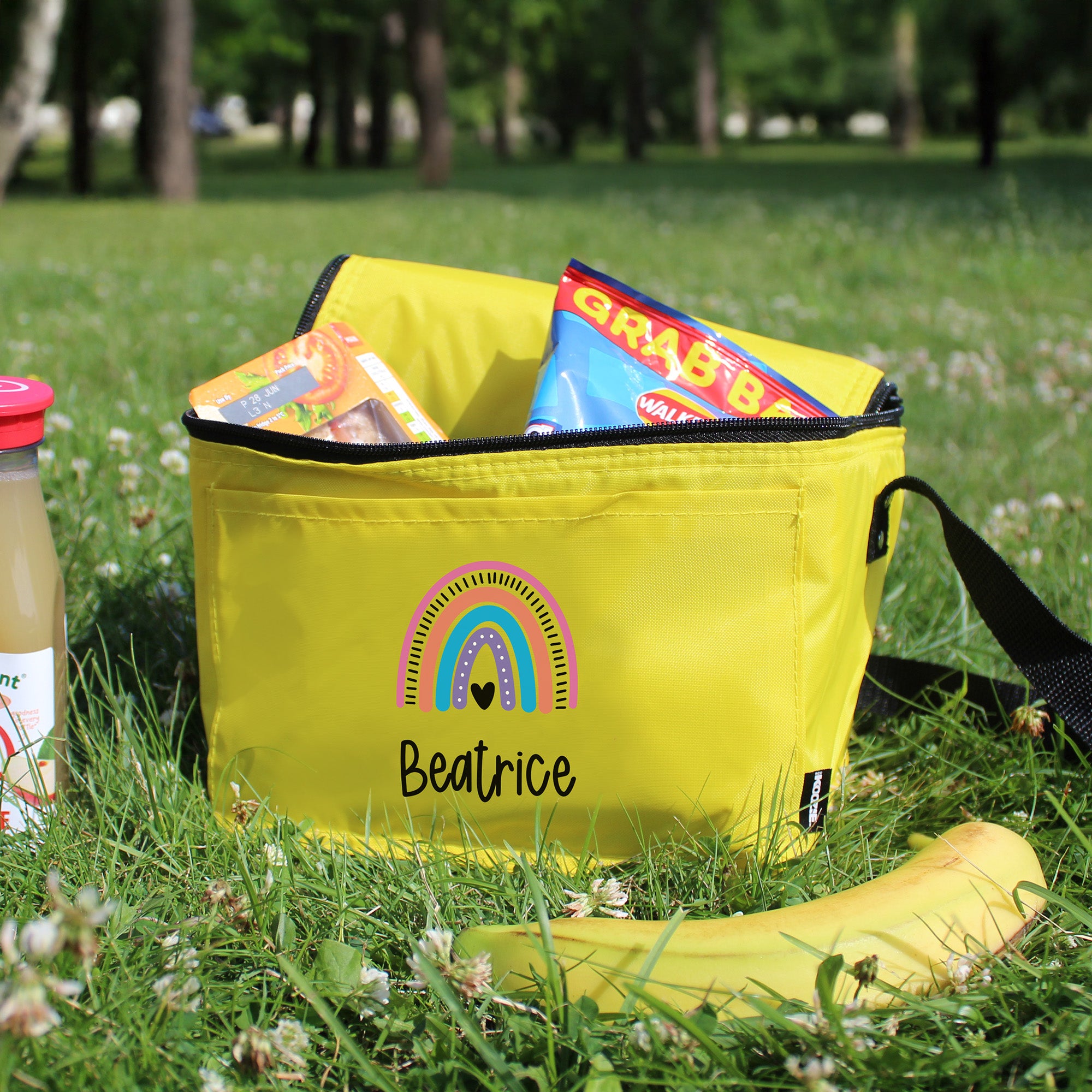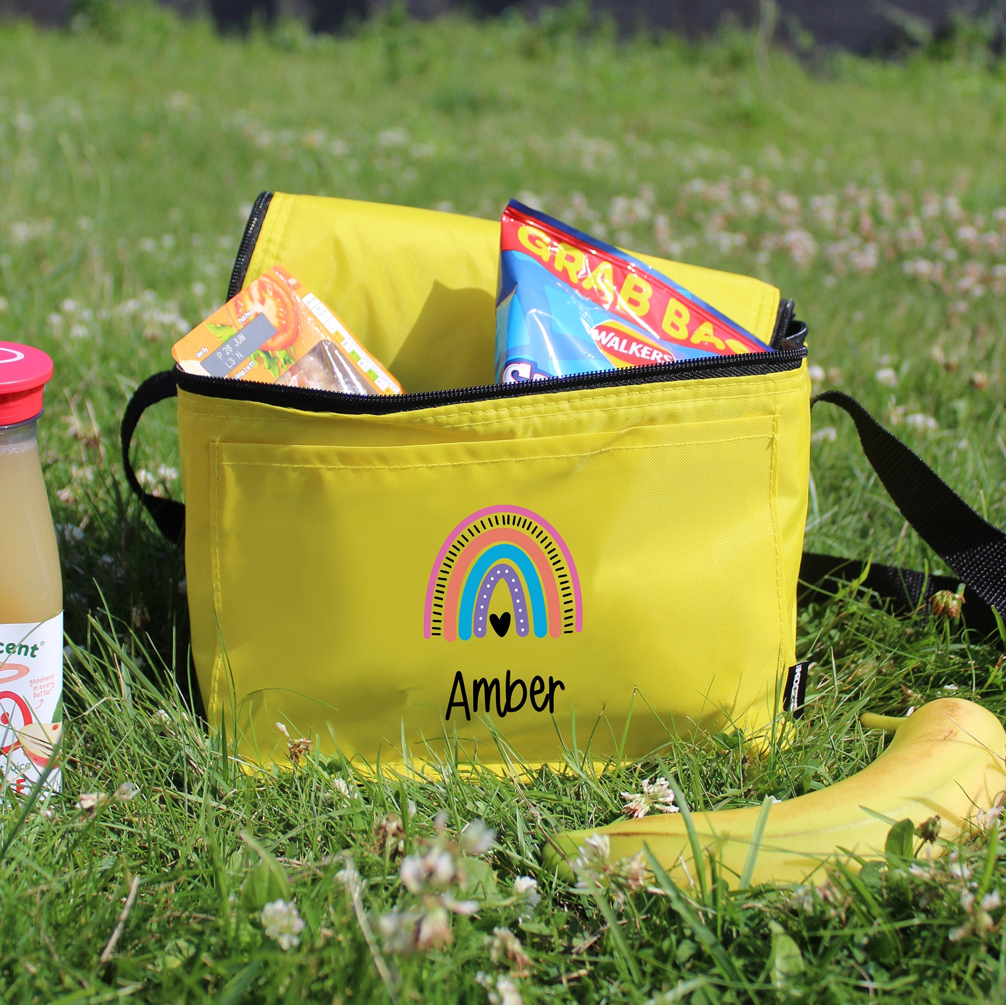 Personalised Insulated Yellow Rainbow Kids Lunch Bag