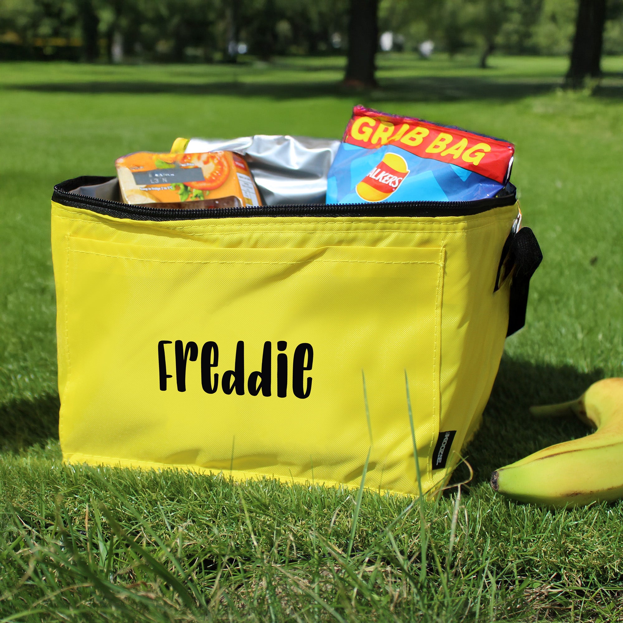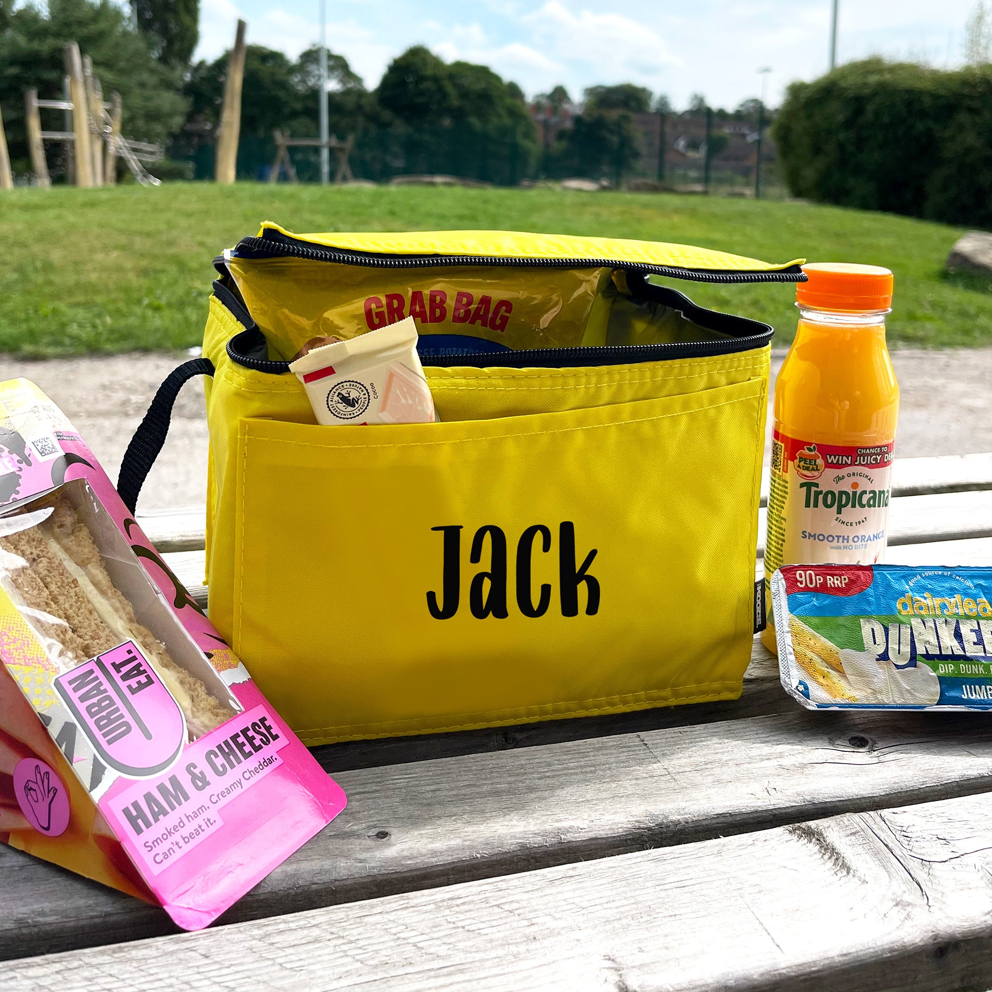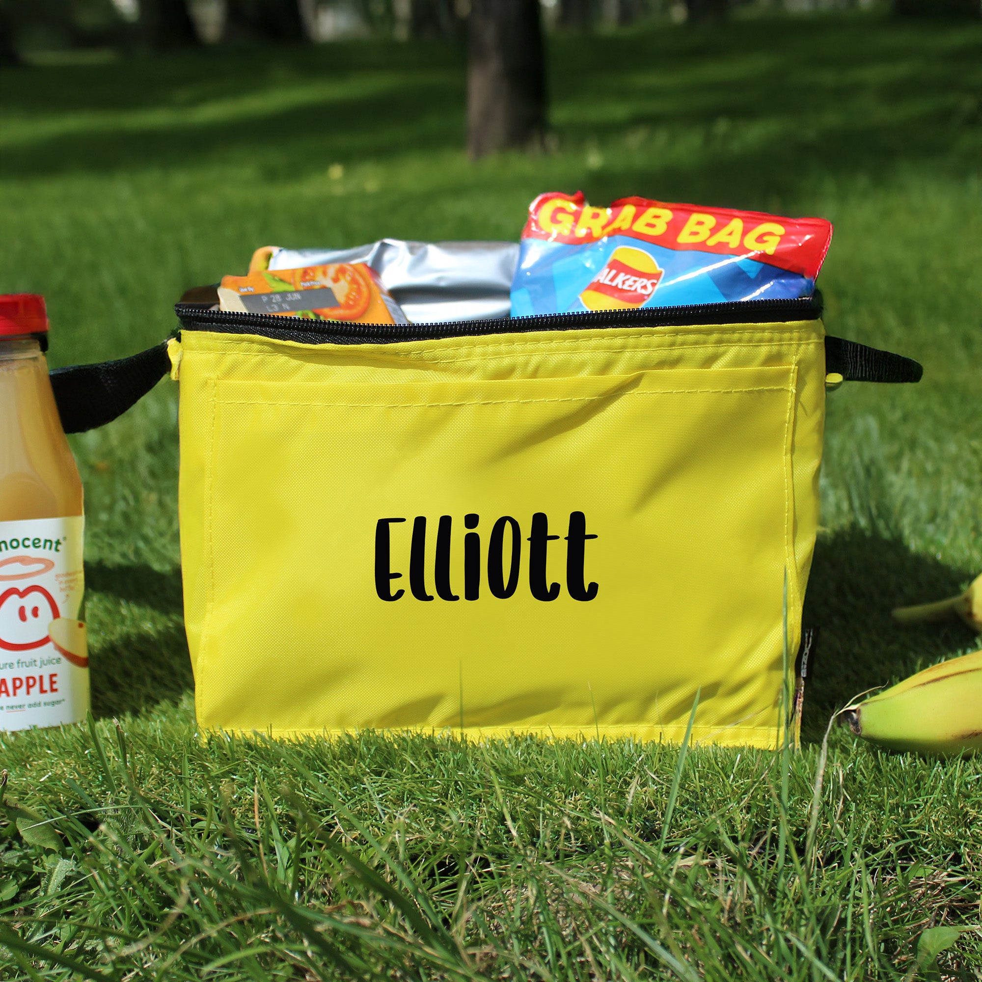 Keep lunchtime fresh, fun, and organised with our Personalised Kids Lunch Bag, perfect for school, nursery, picnics, or days out. This vibrant yellow insulated lunch box is customised with your child’s name in bold black lettering, making it easy to spot and eliminating mix-ups.