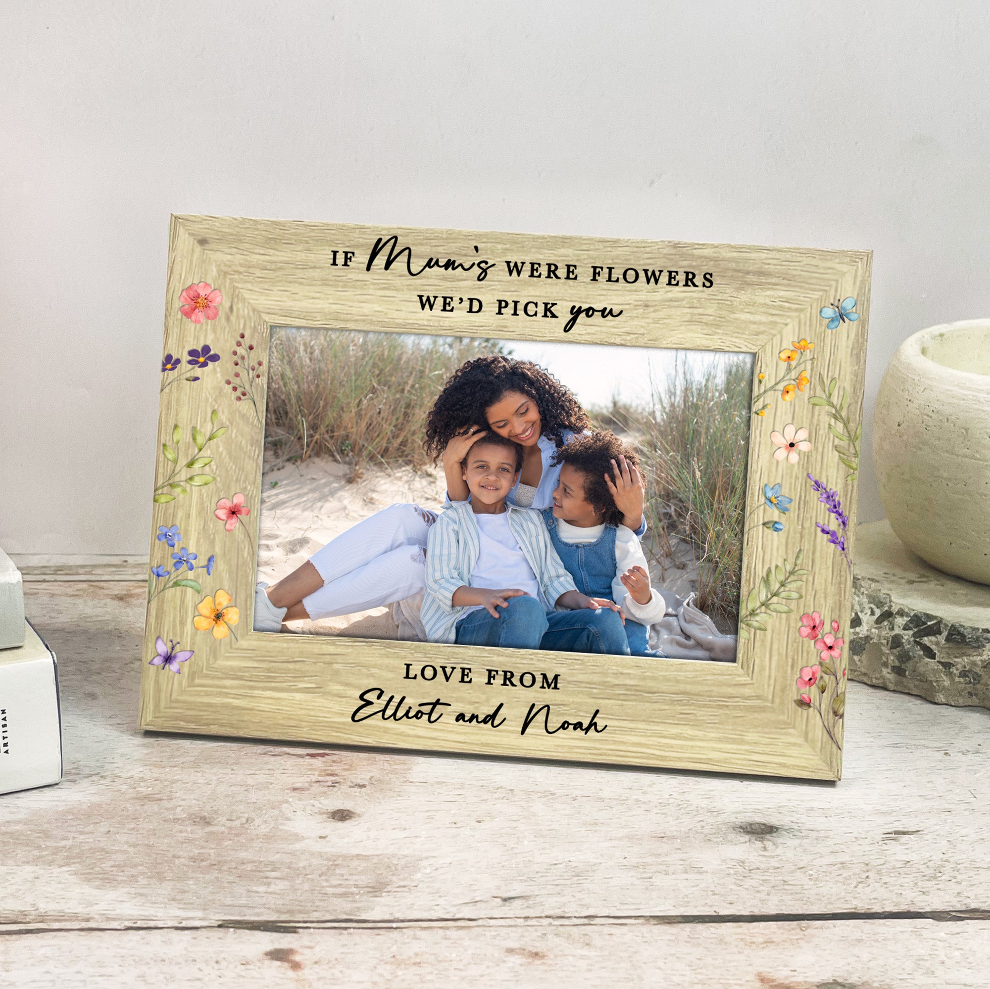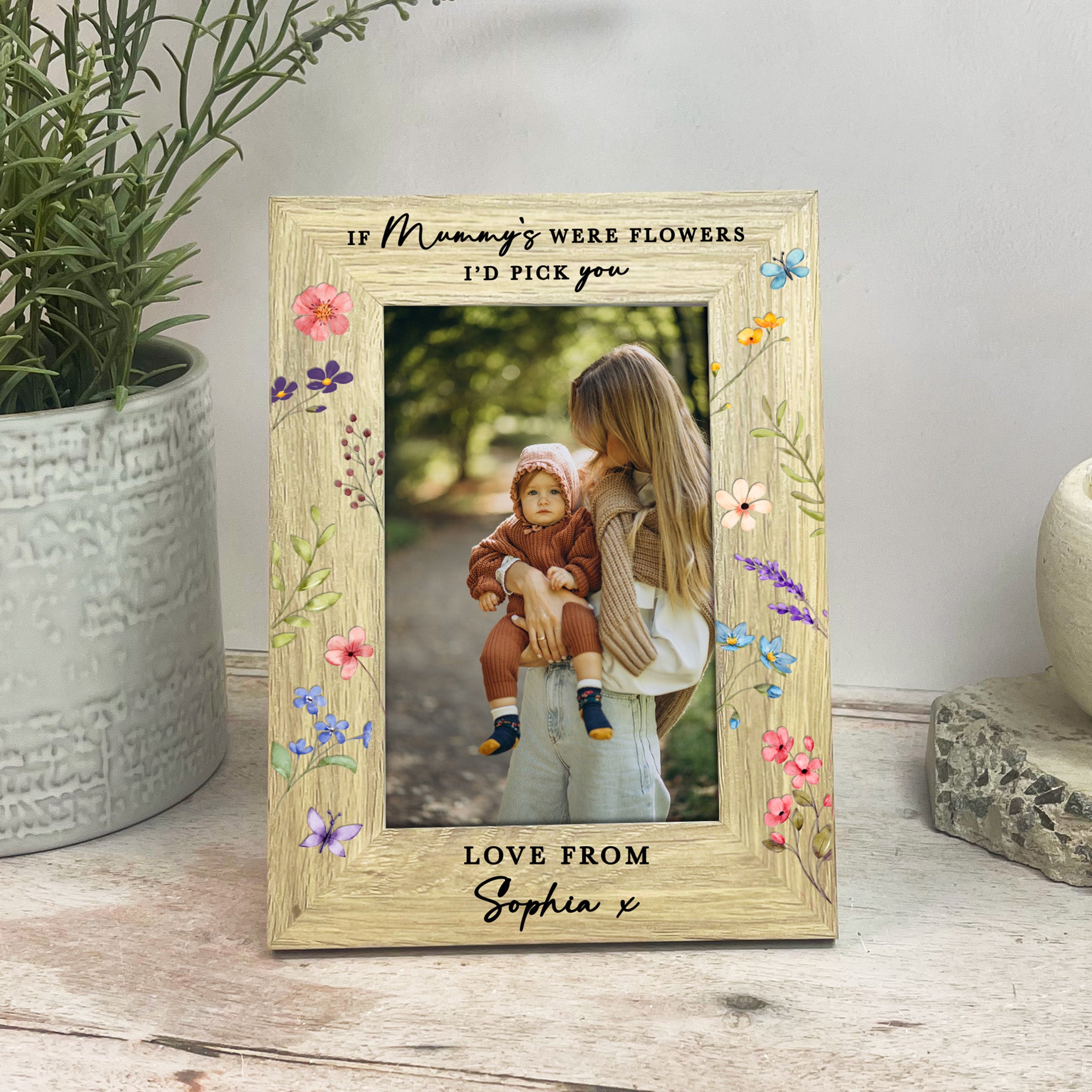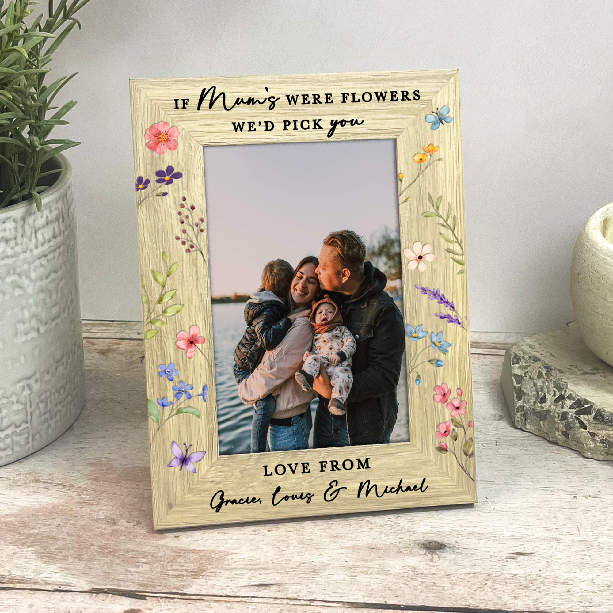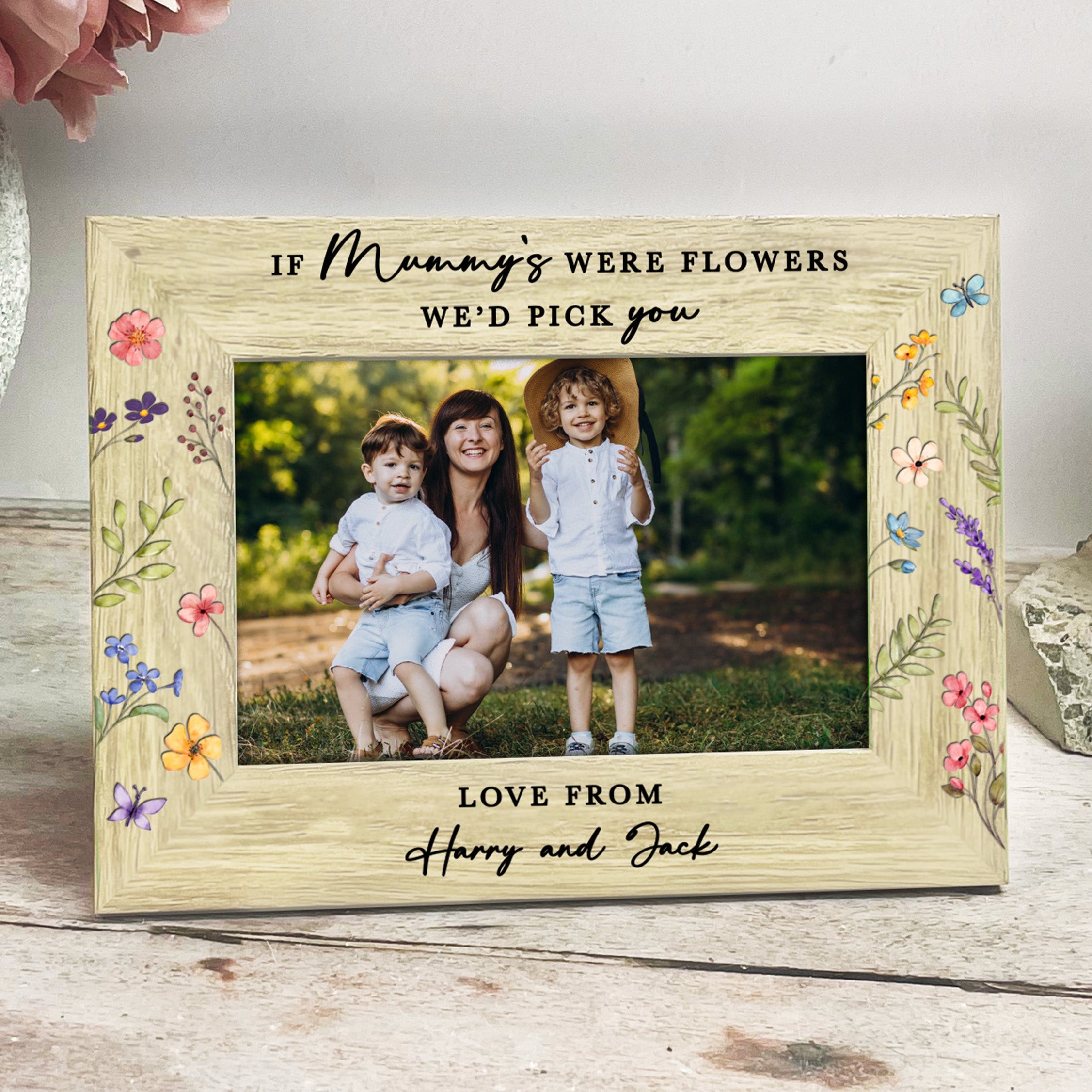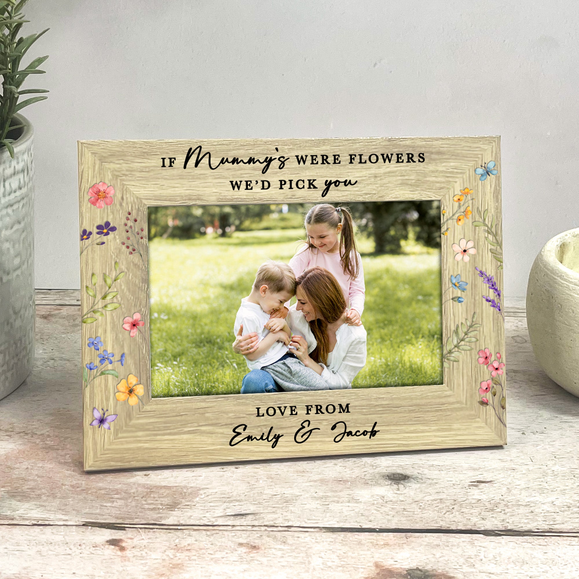 Printed with the sweet quote “If Mum’s Were Flowers I’d Pick You”, this frame can be fully customised to suit your family. Prefer Mummy, Mom, Mama or another special name? No problem at all. The wording can also be adjusted to “I’d pick you” or “We’d pick you”, depending on how many children the gift is from.