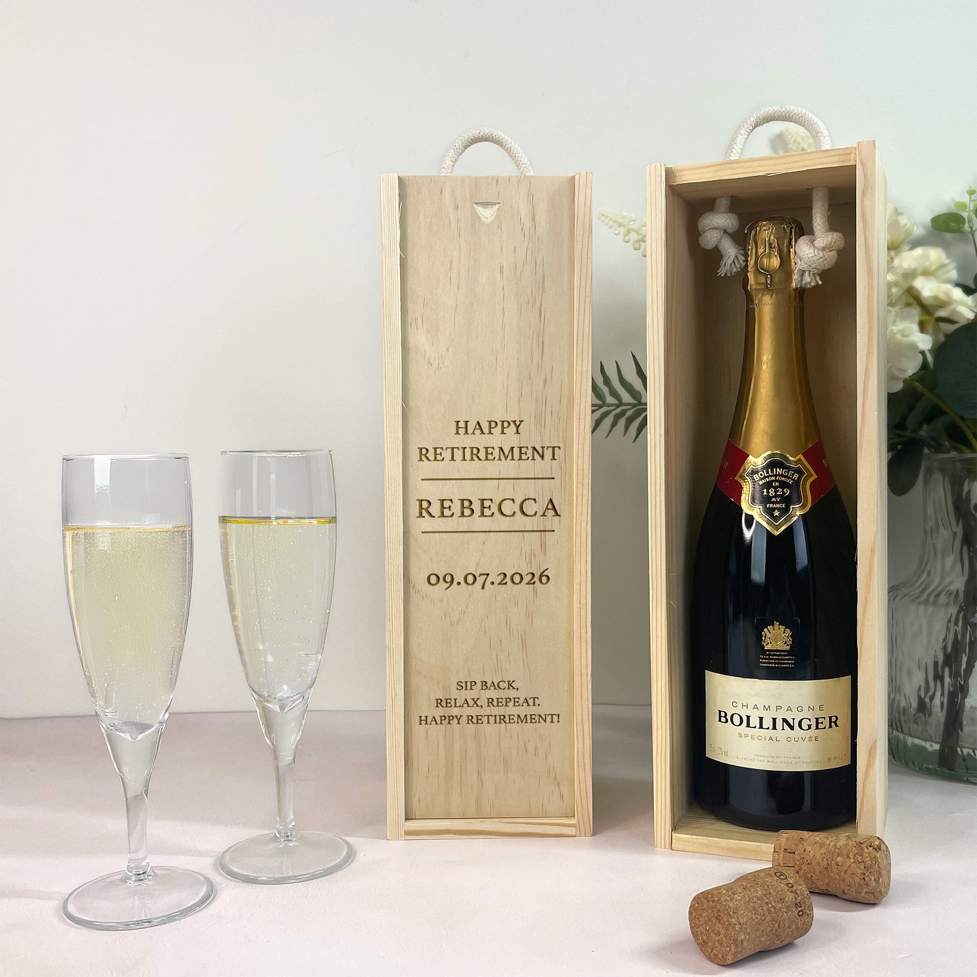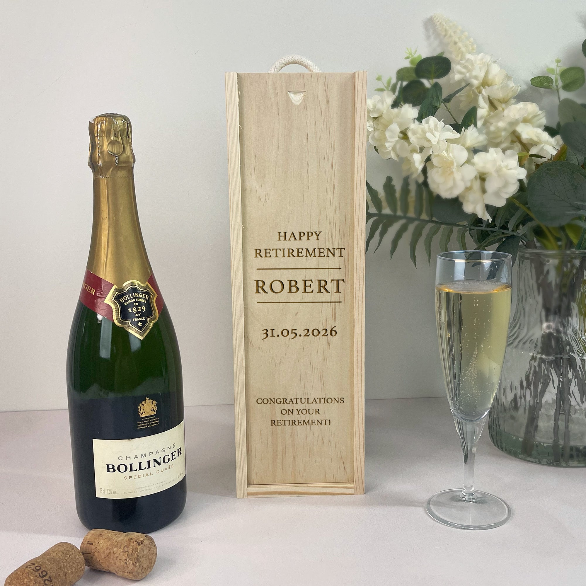 Each box is carefully engraved to ensure crisp, long-lasting detail, making it ideal as both a presentation piece and a keepsake storage box after use. Simply add their favourite wine or fizz to complete the perfect retirement surprise.