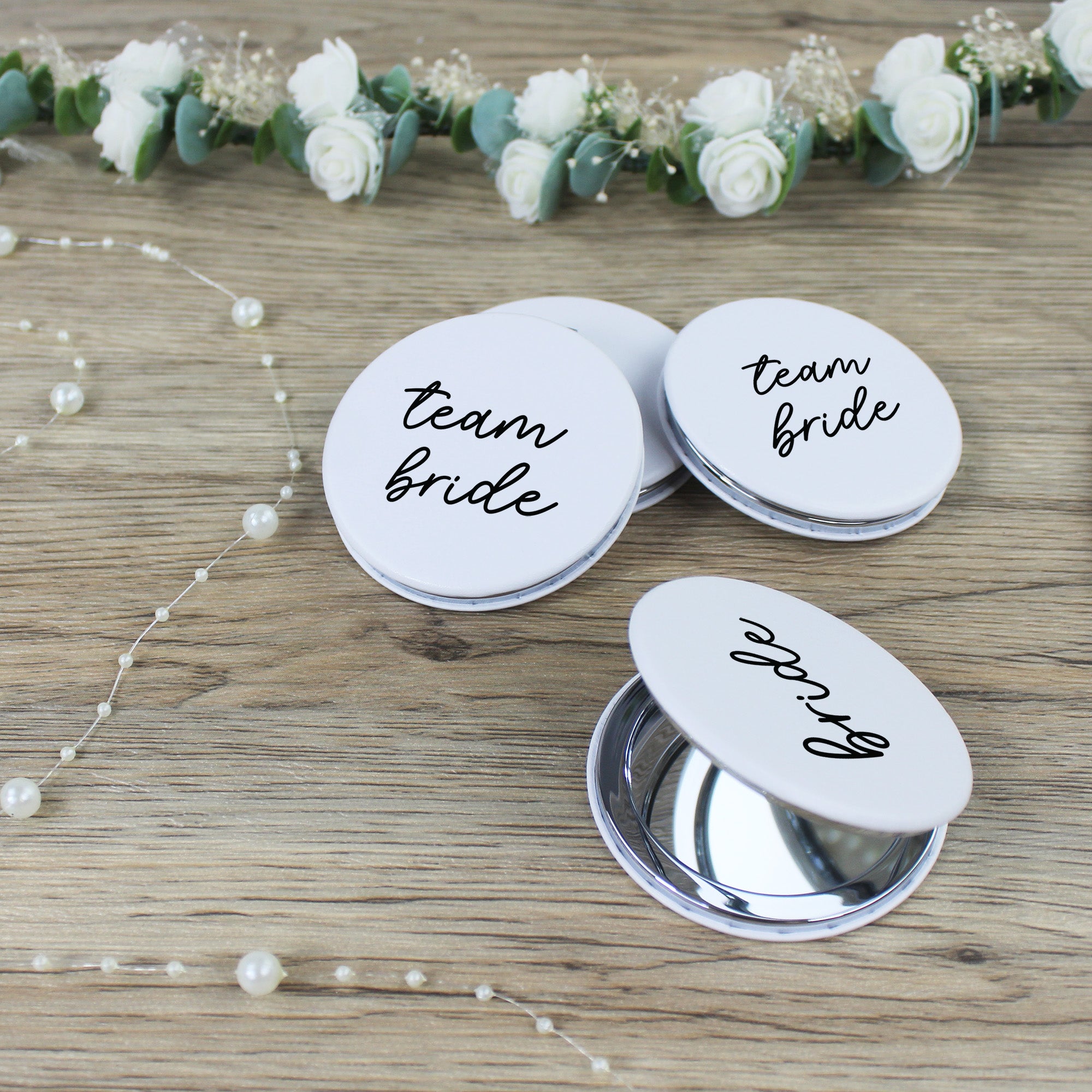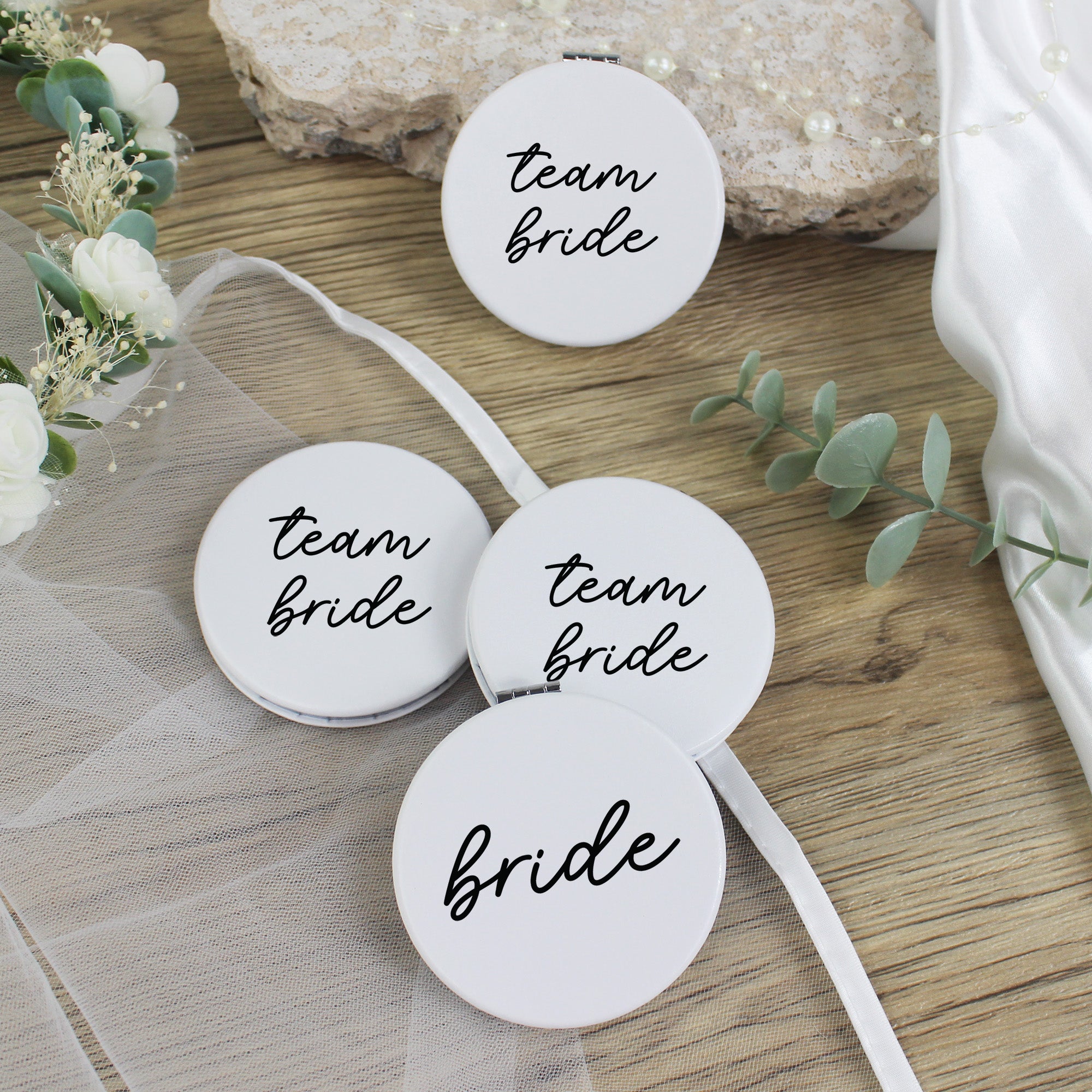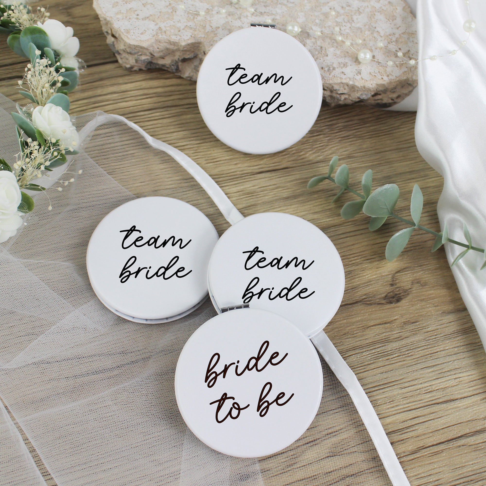 Get ready to celebrate in style with our Team Bride Compact Mirrors, the ultimate hen party favour for your bridal crew! Perfectly designed to fit any white and black hen party theme, these luxurious PU leather mirrors make thoughtful keepsakes for your bride tribe.