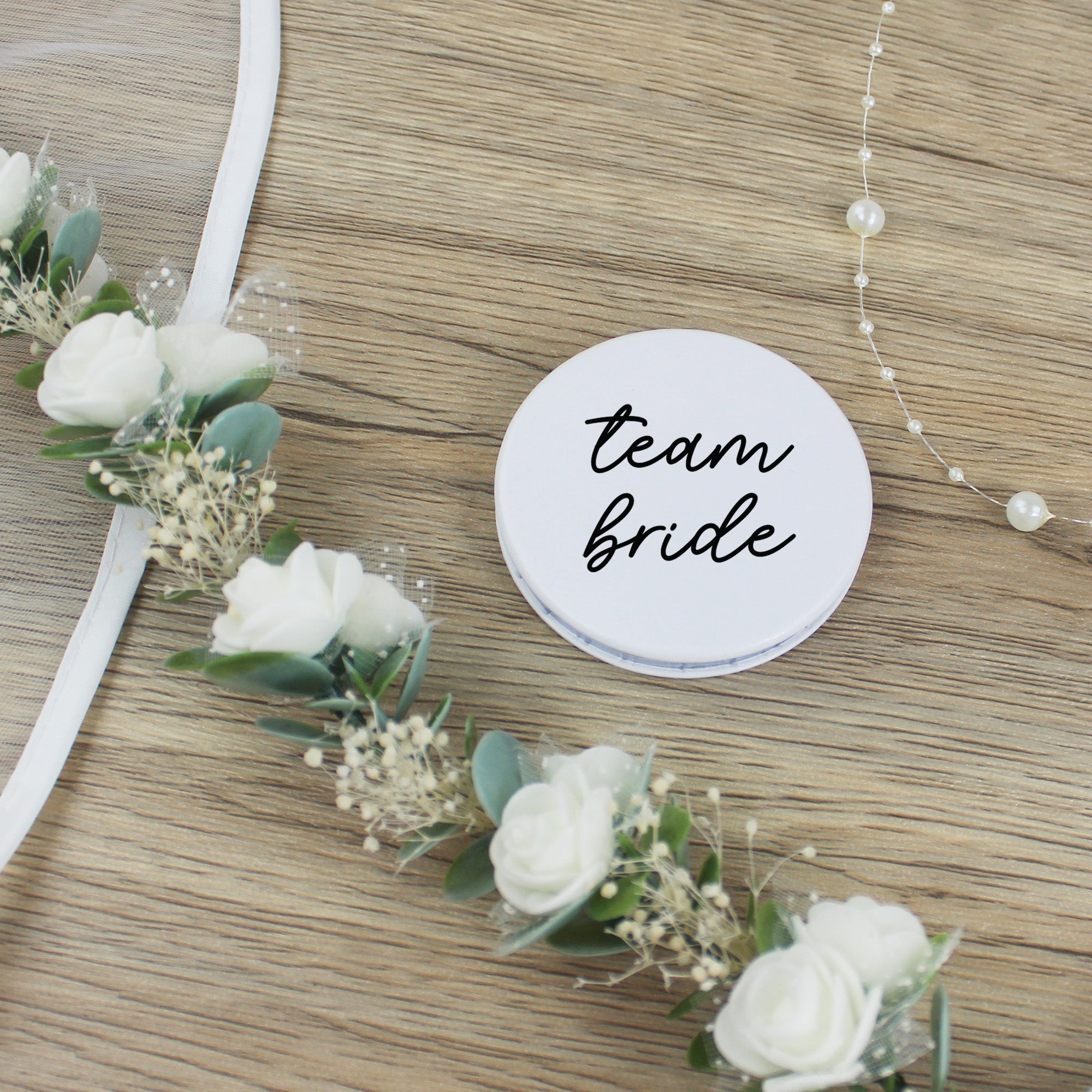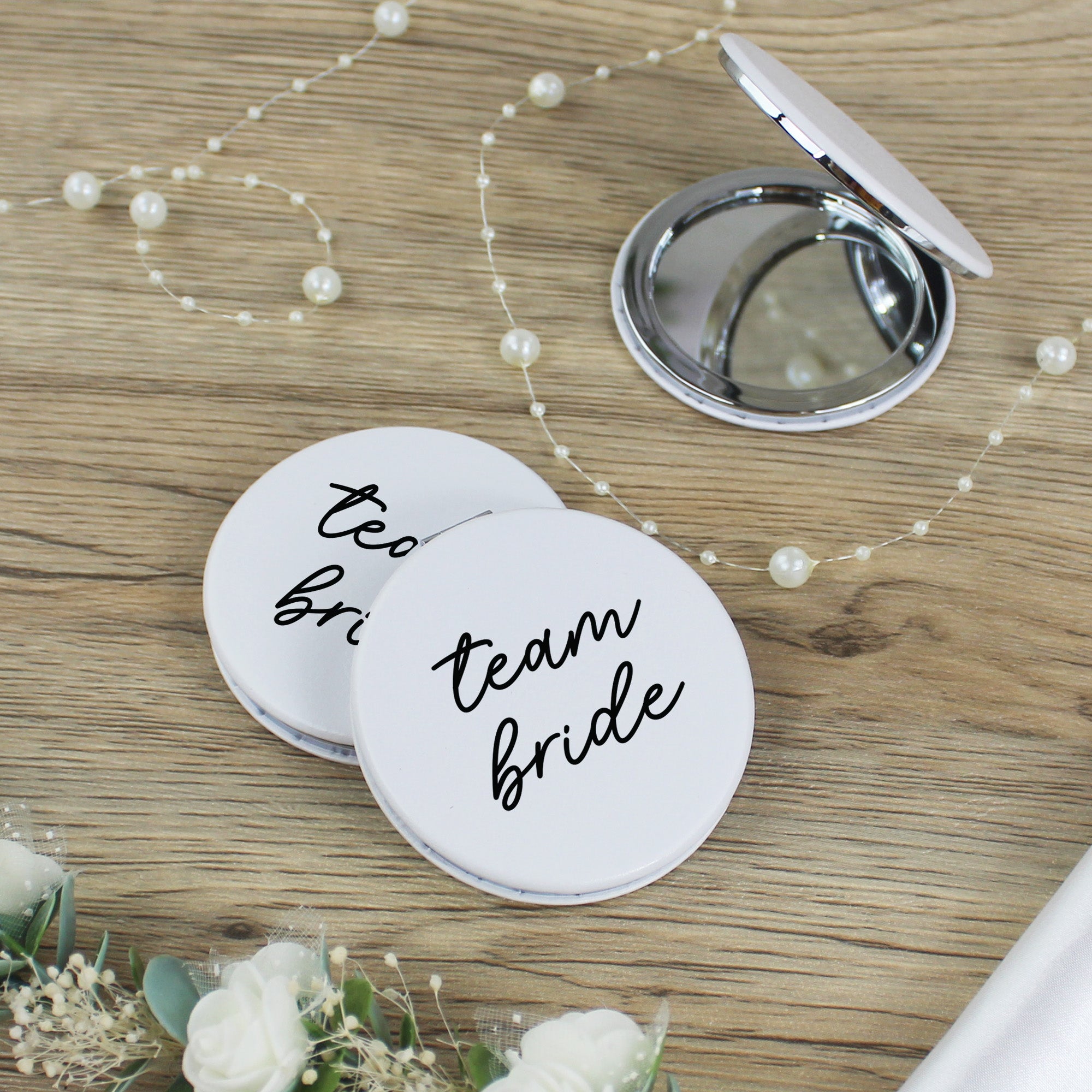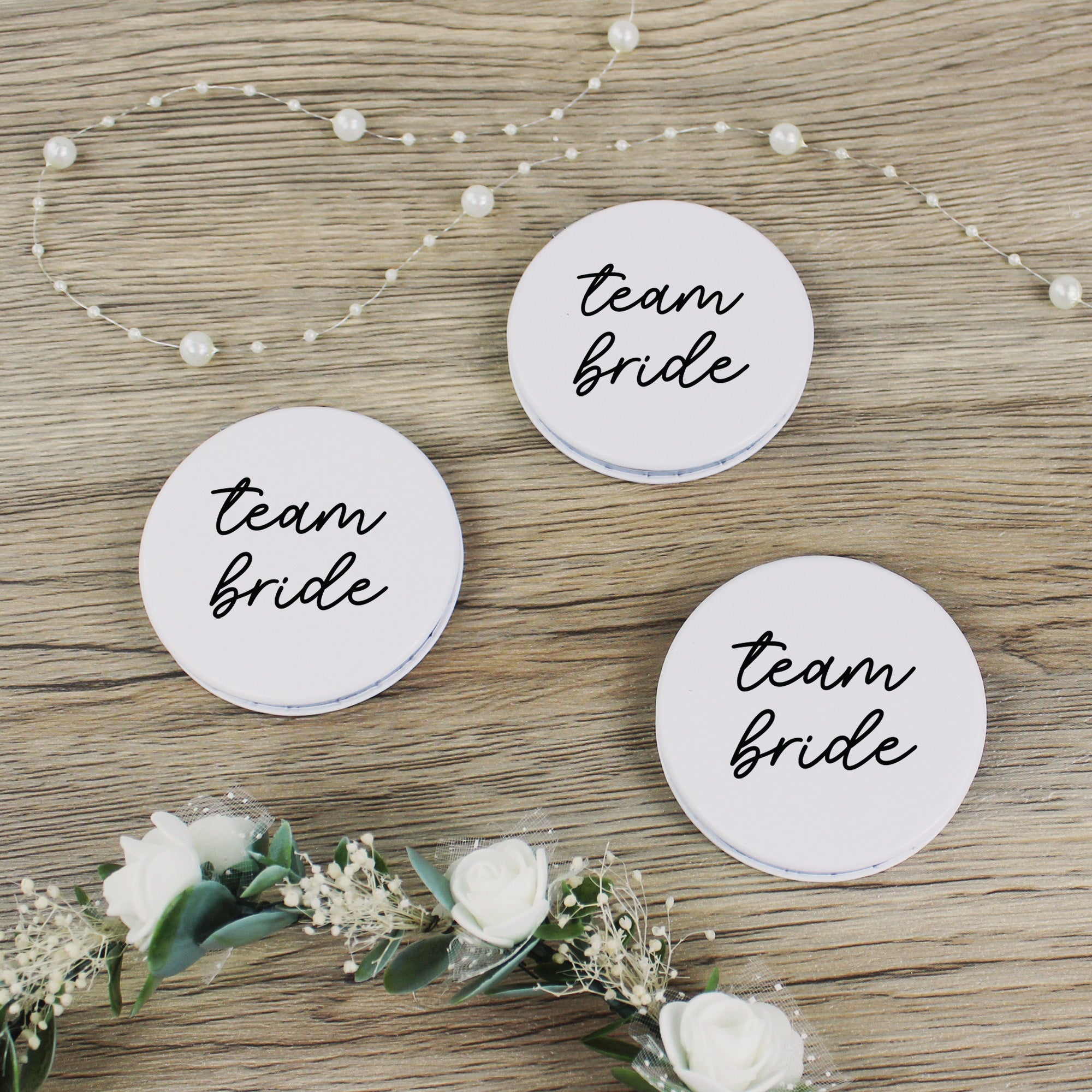 Get ready to celebrate in style with our Team Bride Compact Mirrors, the ultimate hen party favour for your bridal crew! Perfectly designed to fit any white and black hen party theme, these luxurious PU leather mirrors make thoughtful keepsakes for your bride tribe.