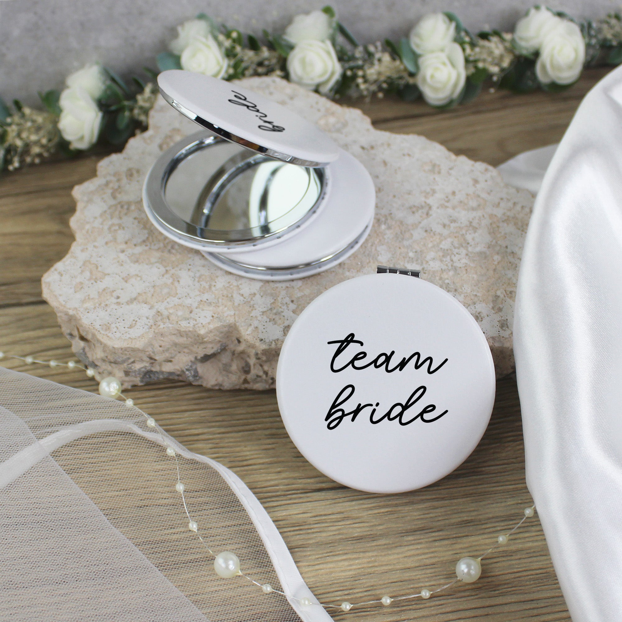 Each mirror features a sleek white design with “Team Bride” elegantly printed in black, symbolising unity, elegance, and celebration. To make the bride shine even more, she has her very own exclusive white mirror, labelled either “Bride” or “Bride To Be.”