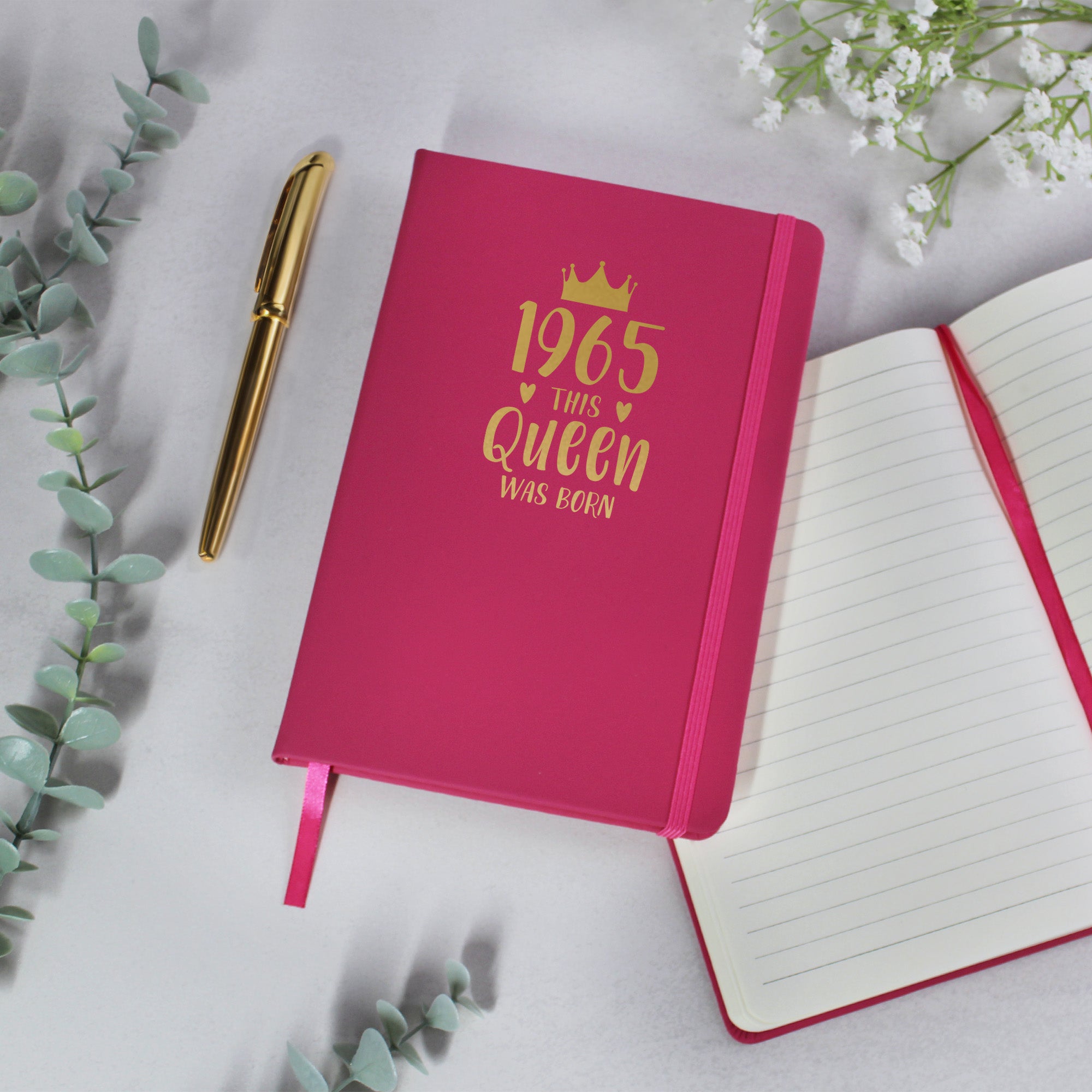 Personalised "1965 This Queen was Born" Pink A5 Notebook