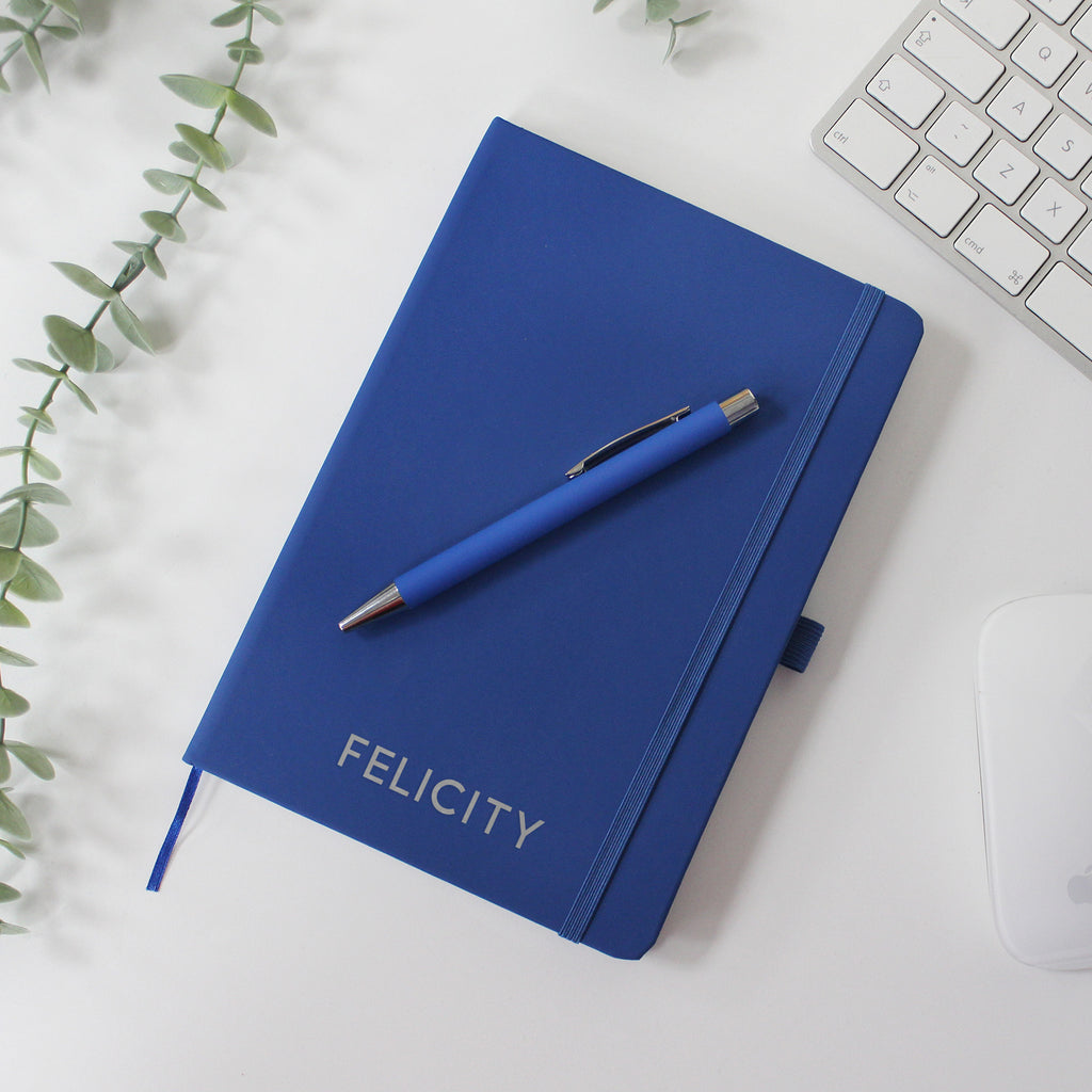 Indulge yourself or surprise someone special with our Personalised Notebook, Pen, and Bottle Set, available in two timeless colours: sleek black or bold blue.