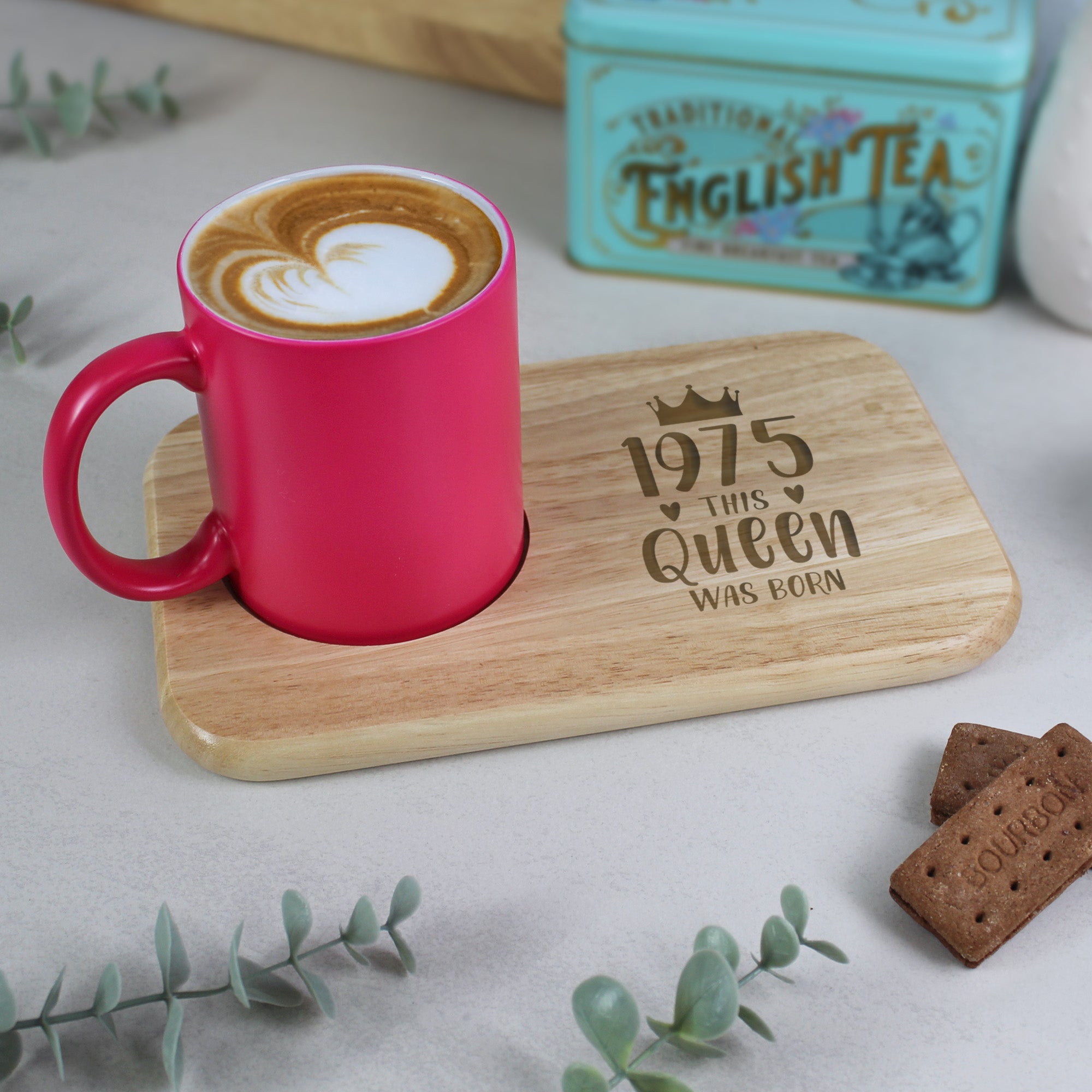 This beautifully crafted "1975: This Queen Was Born" wooden tea and biscuit board is a delightful blend of practicality and sentiment, making it an ideal gift for a milestone birthday.
