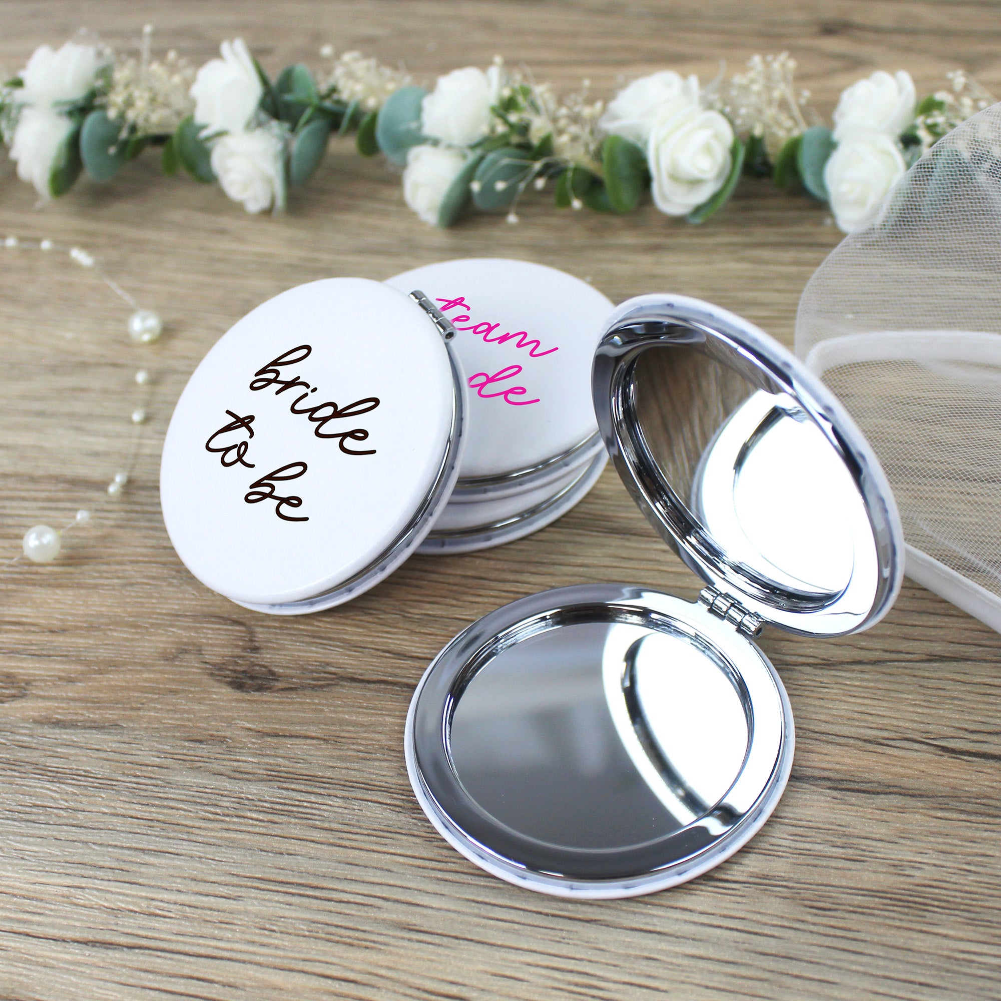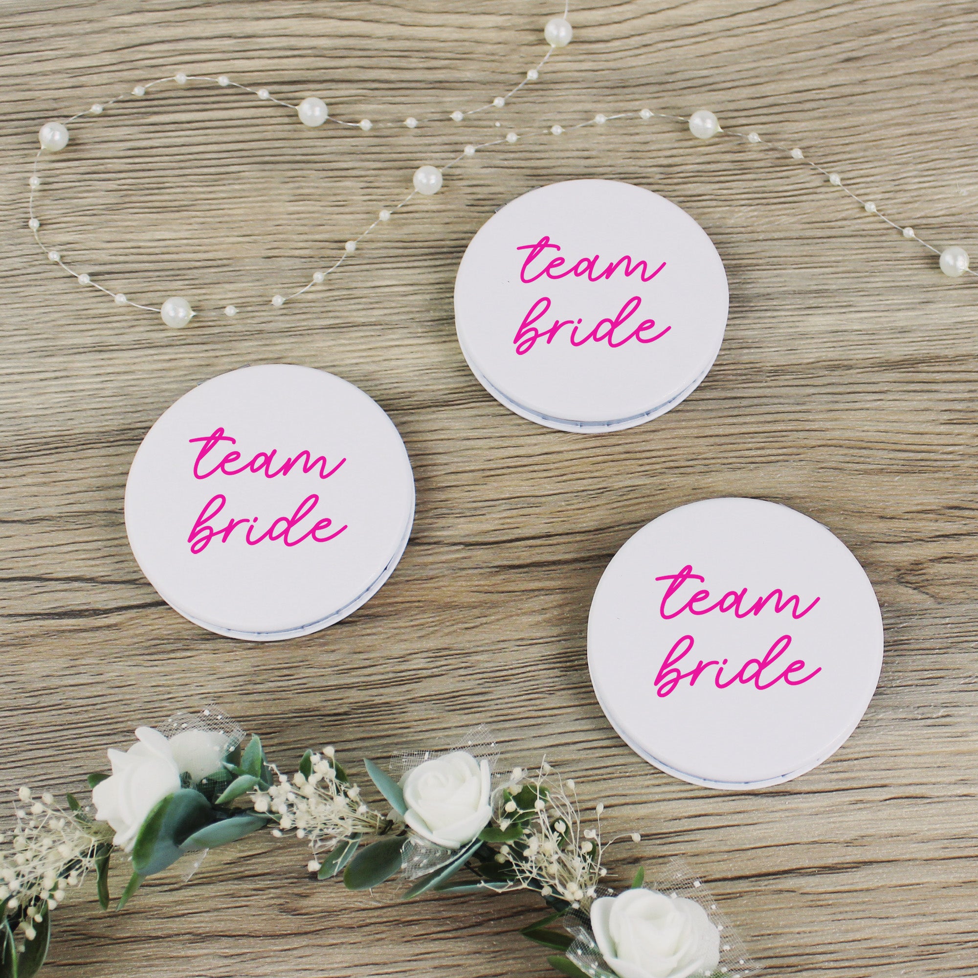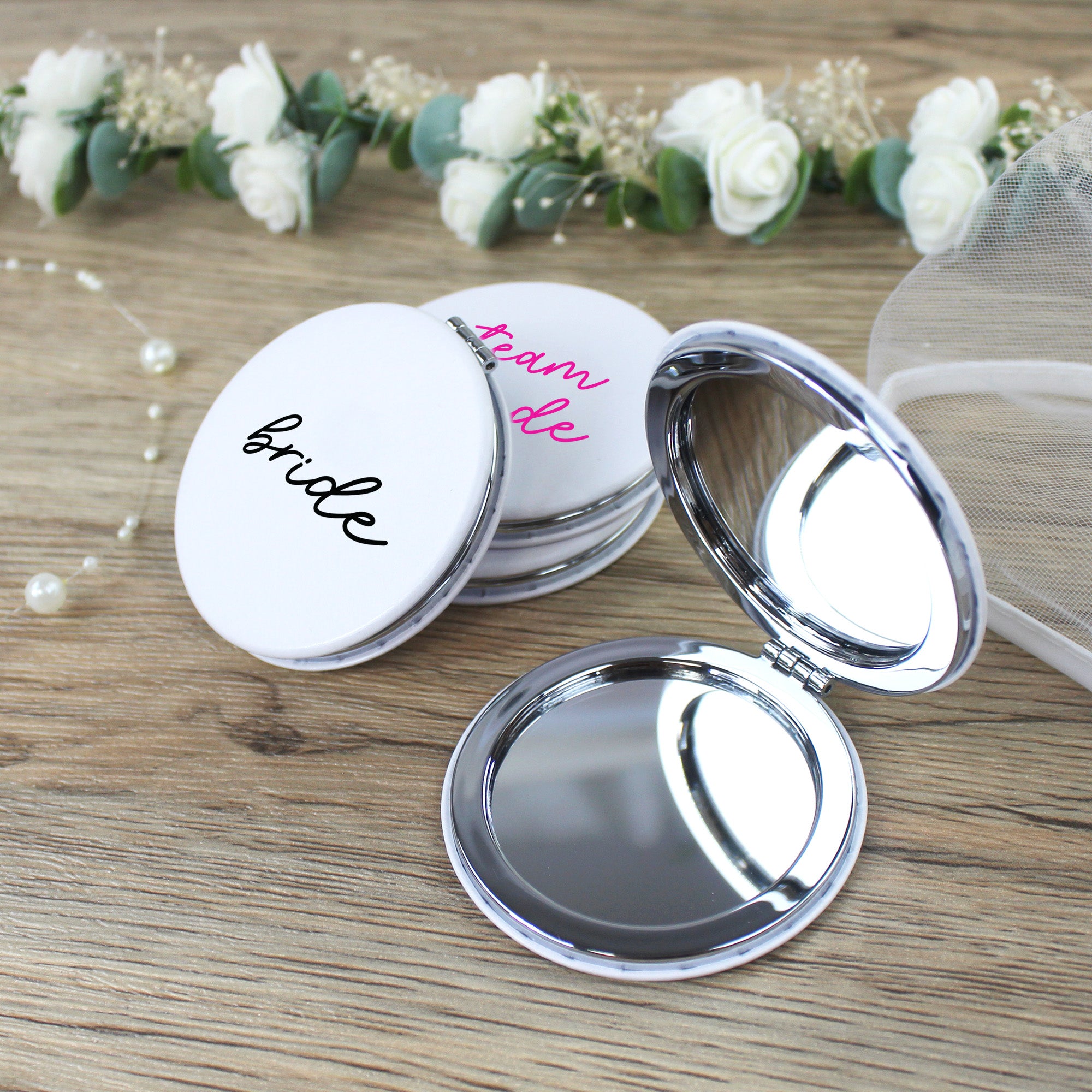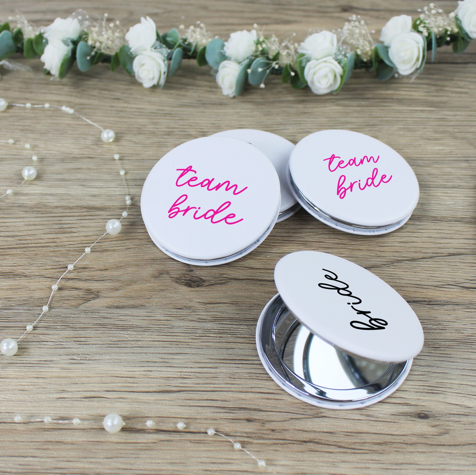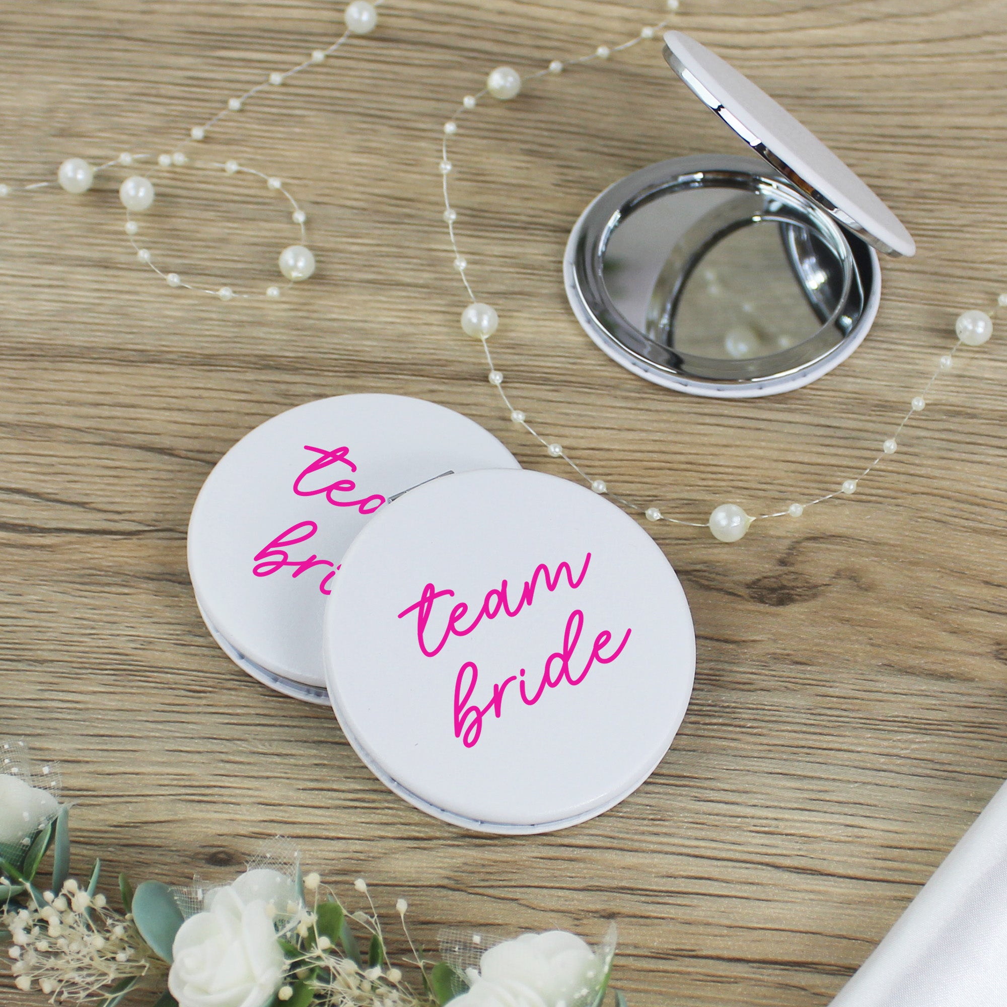 Team Bride Compact Mirrors - Pink & White