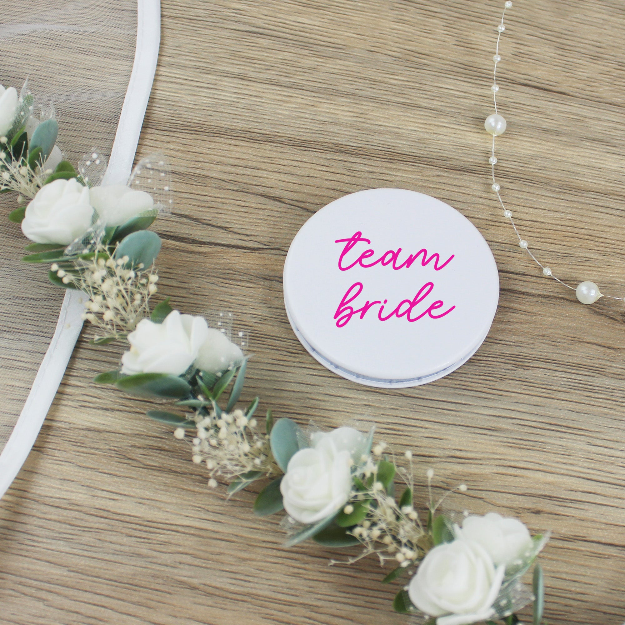 Get ready to celebrate in style with our Team Bride Compact Mirrors, the ultimate hen party favour for your bridal crew! Perfectly designed to fit any white and pink hen party theme, these luxurious PU leather mirrors make thoughtful keepsakes for your bride tribe.